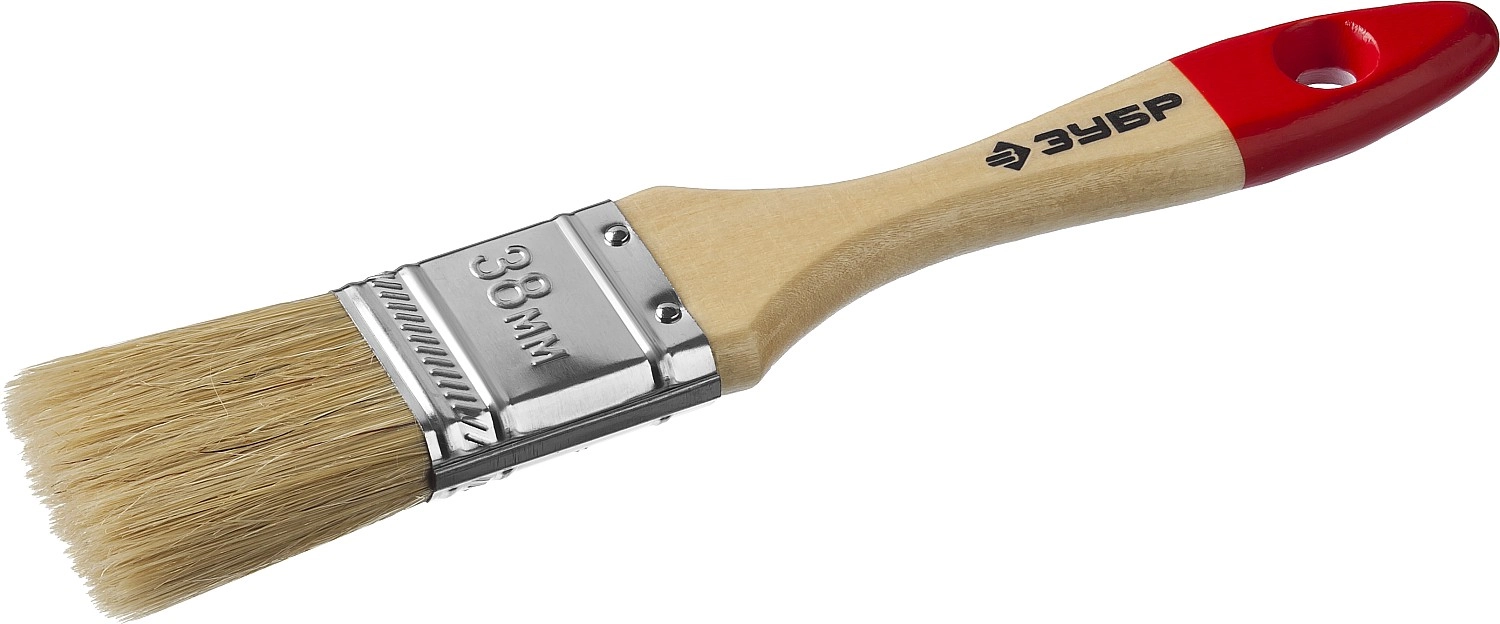 ПроизводителиКисть плоская 38мм, натур. щетина, толщ. ворса 15мм, дер. ручка "УНИВЕРСАЛ" (4-01003-038) ЗУБР