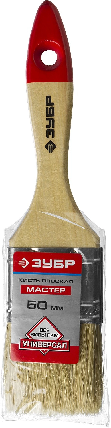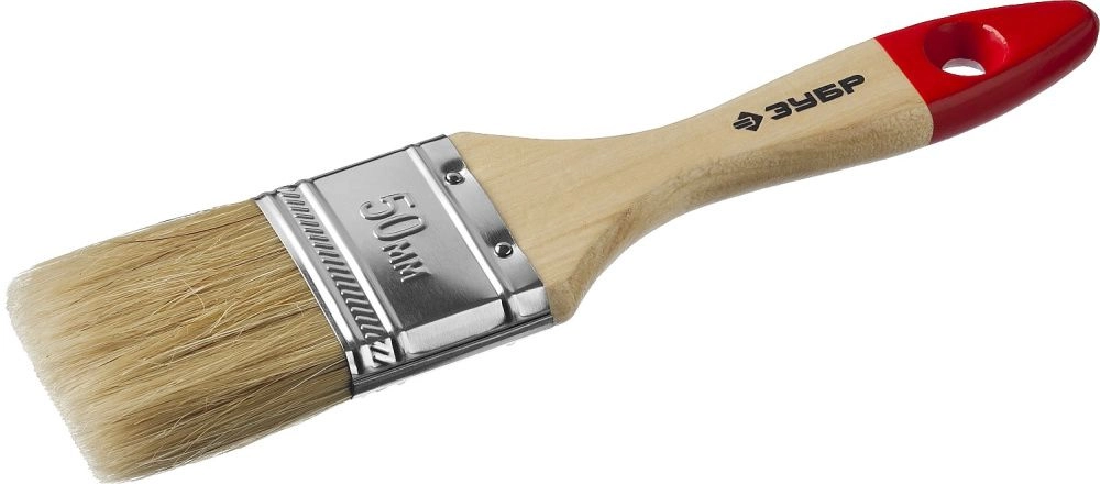 ПроизводителиКисть плоская 50мм, натур. щетина, толщ. ворса 15мм, дер. ручка "УНИВЕРСАЛ" (4-01003-050) ЗУБР