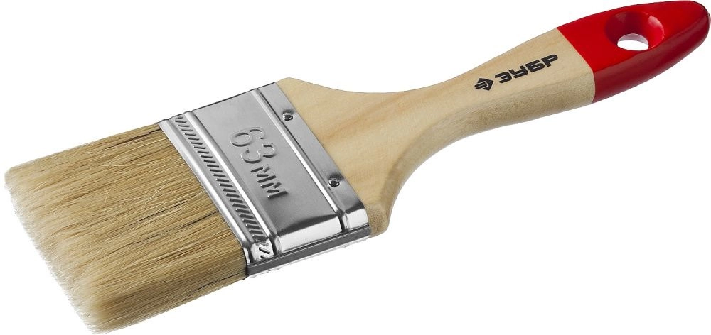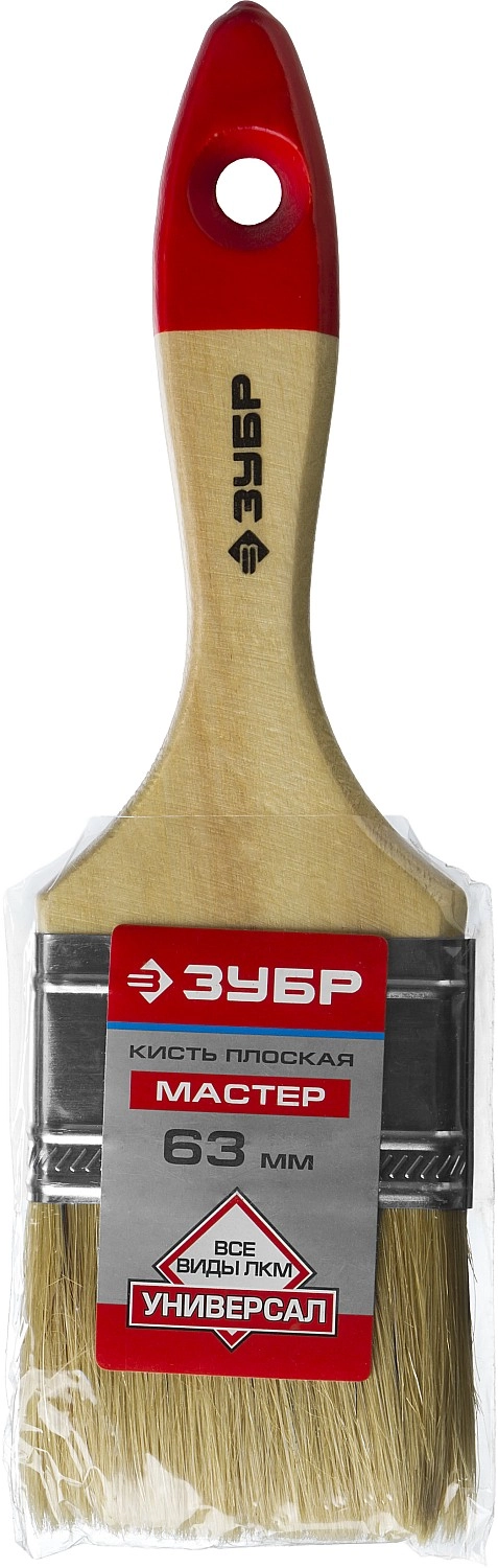 ПроизводителиКисть плоская 63мм, натур. щетина, толщ. ворса 15мм, дер. ручка "УНИВЕРСАЛ" (4-01003-063) ЗУБР