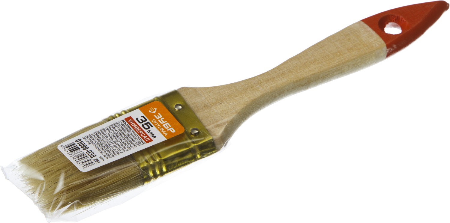 ПроизводителиКисть плоская 35мм, натур. светл. щетина, дер. ручка "УНИВЕРСАЛ-ОПТИМА" (01099-038_z01) ЗУБР