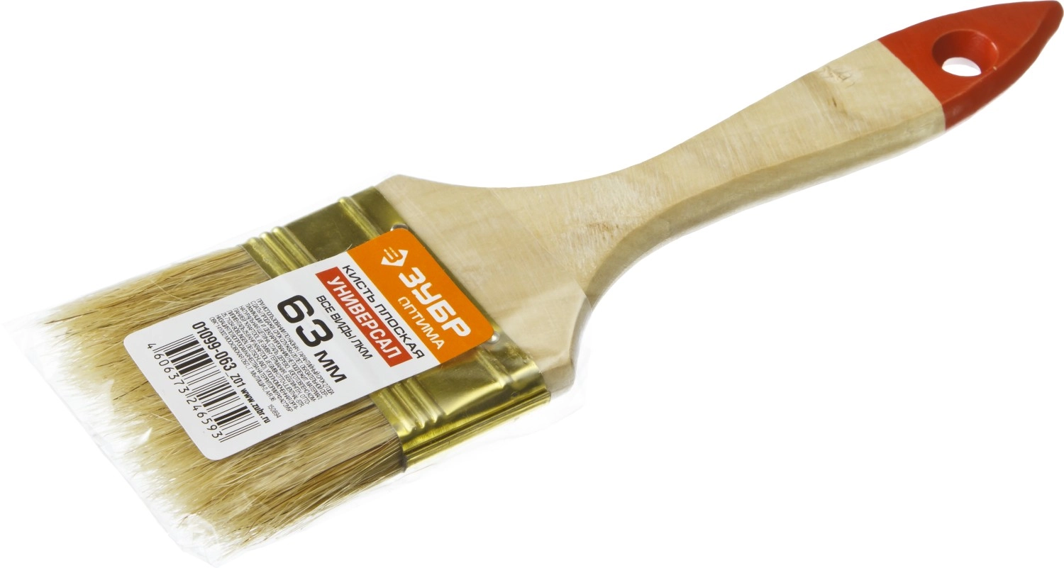 ПроизводителиКисть плоская 63мм, натур. светл. щетина, дер. ручка "УНИВЕРСАЛ-ОПТИМА" (01099-063_z01) ЗУБР