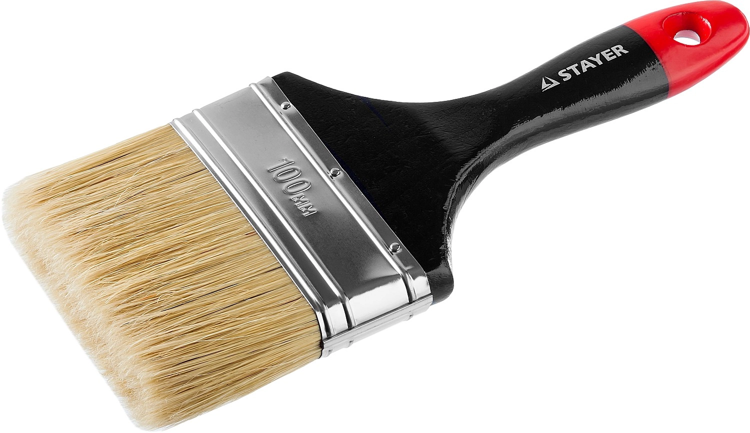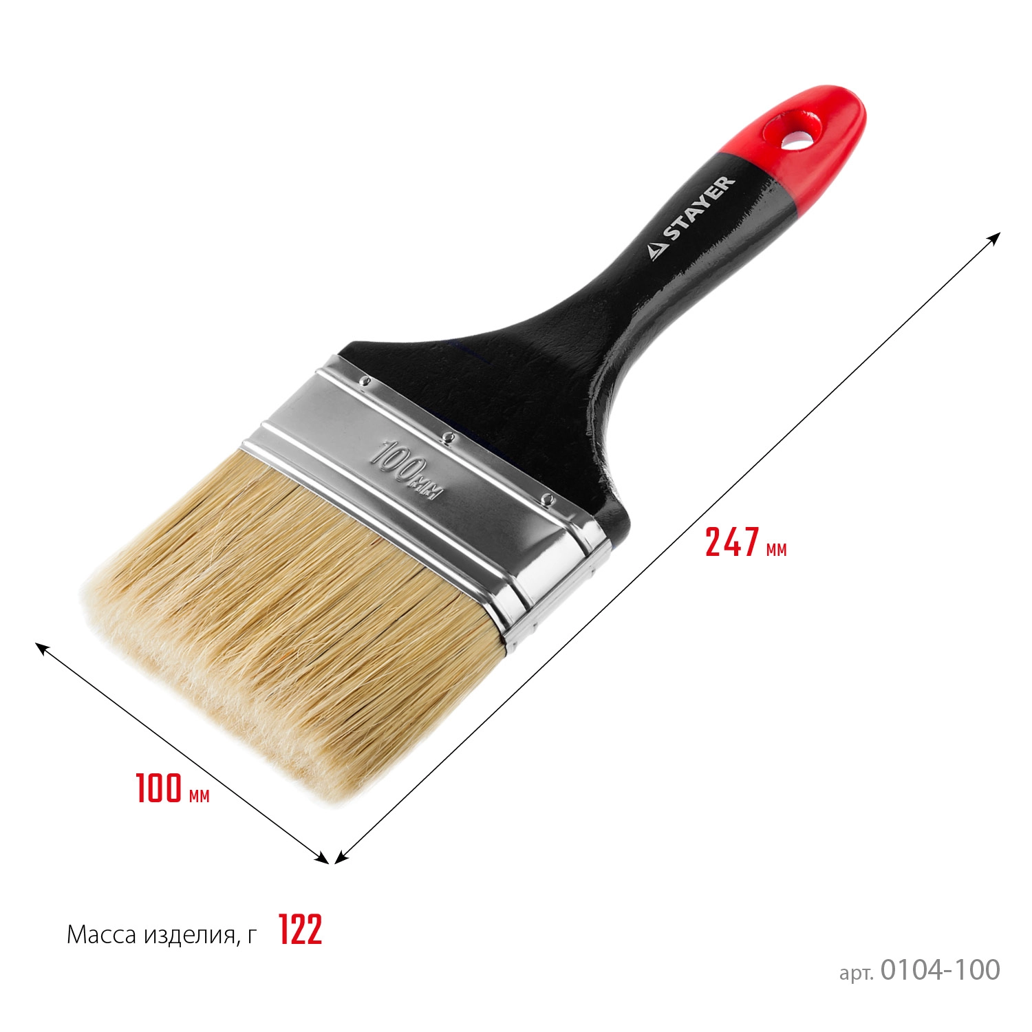 ПроизводителиКисть плоская 100мм, натур. светл. щетина, дер. ручка "UNIVERSAL-PROFI" (0104-100) STAYER
