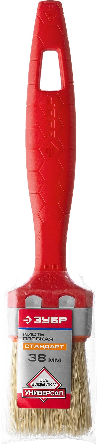 ПроизводителиКисть плоская 38мм, натур. светл. щетина, пласт. ручка "УНИВЕРСАЛ-СТАНДАРТ" (01015-038) ЗУБР