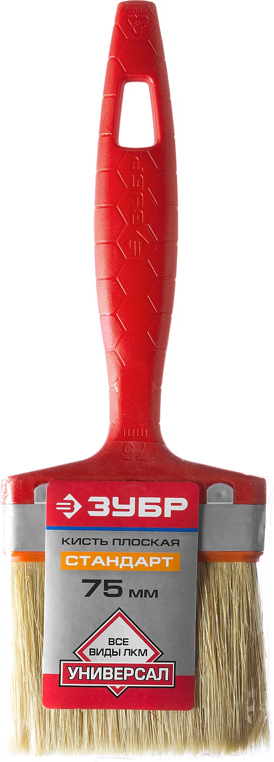 ПроизводителиКисть плоская 75мм, натур. светл. щетина, пласт. ручка "УНИВЕРСАЛ-СТАНДАРТ" (01015-075) ЗУБР