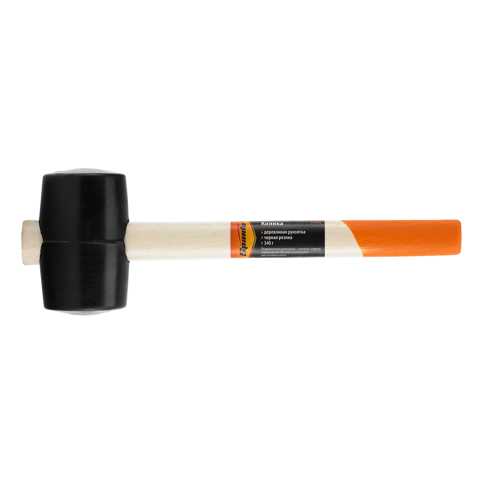 Резиновая киянка Sparta 111405 из черной резины с деревянной рукояткой, 340 г, используется при укладке плитки и ламината, рихтовке металла, сборке мебели и т.д.