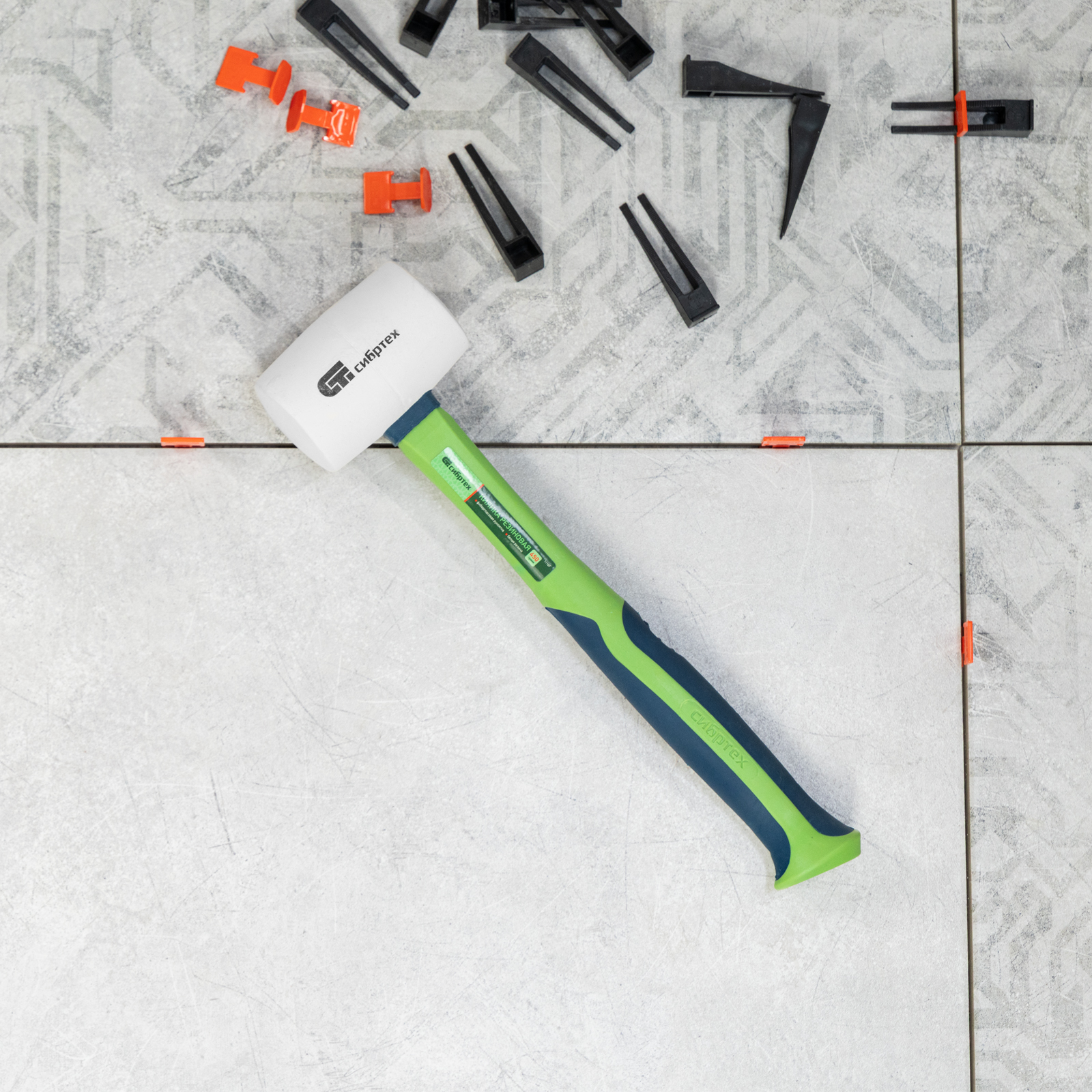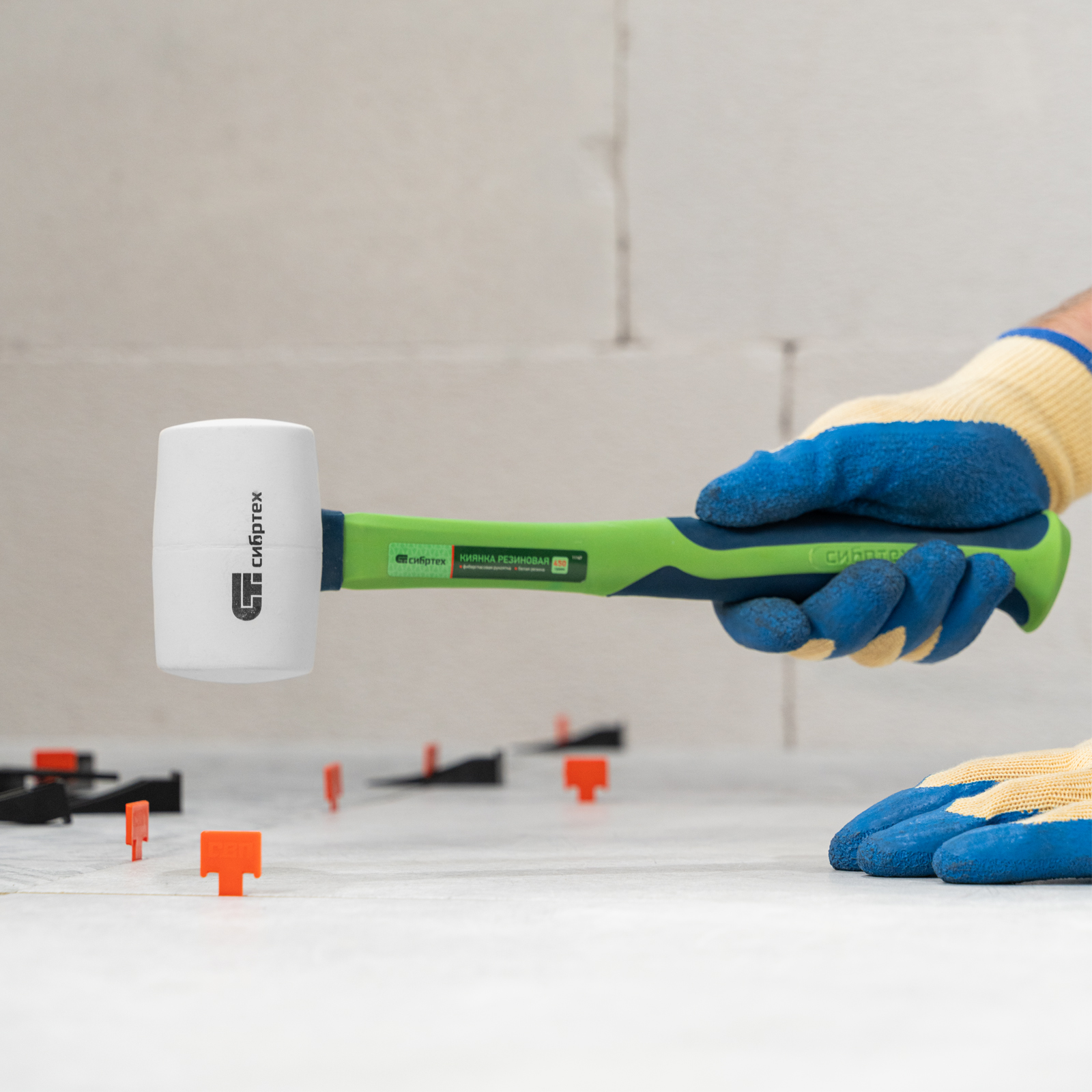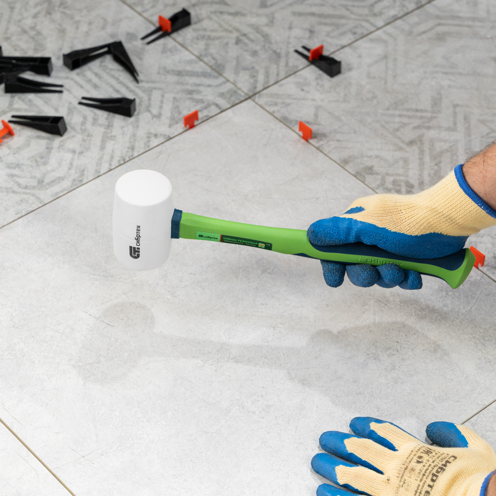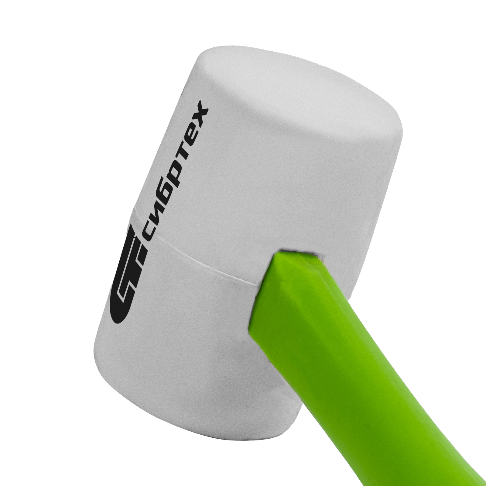Резиновая киянка Сибртех 11167 из белой резины с фибергласовой рукояткой, 450 г, применяется при проведении монтажных, сборочных и кузовных работ, укладке плитки.