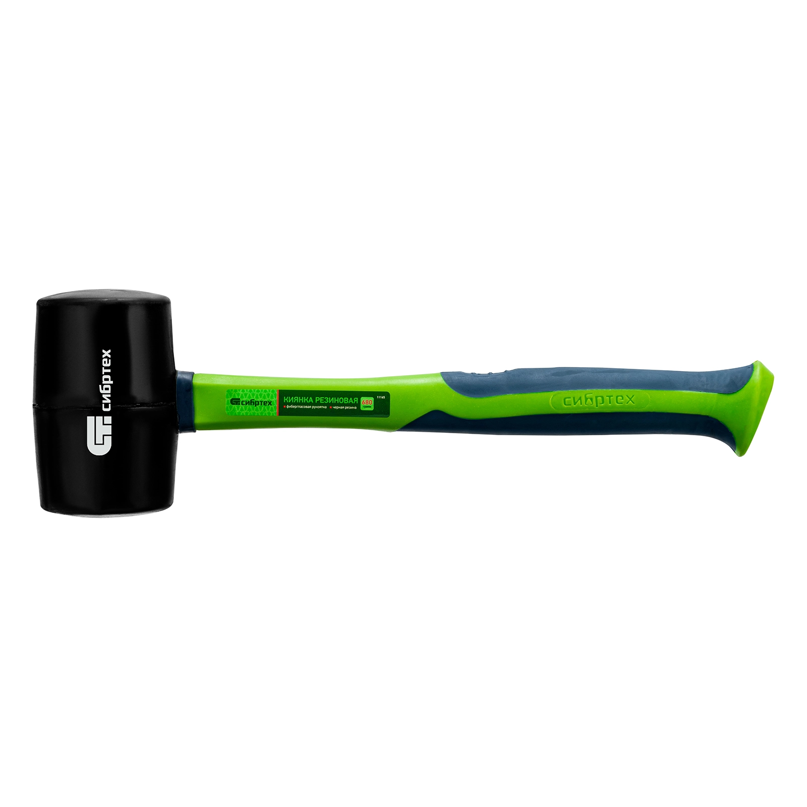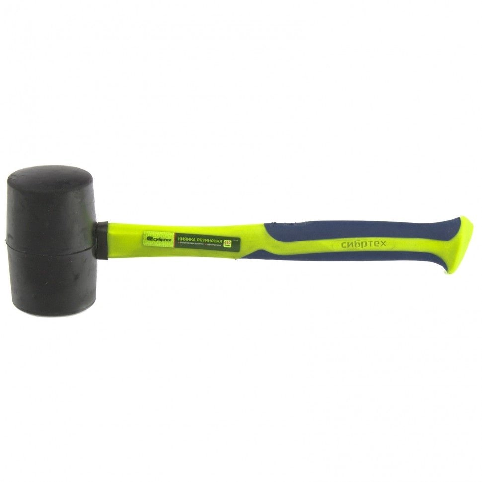 Резиновая киянка Сибртех 11165 из черной резины с фибергласовой рукояткой, 680 г, применяется при проведении монтажных, сборочных и кузовных работ, укладке плитки.