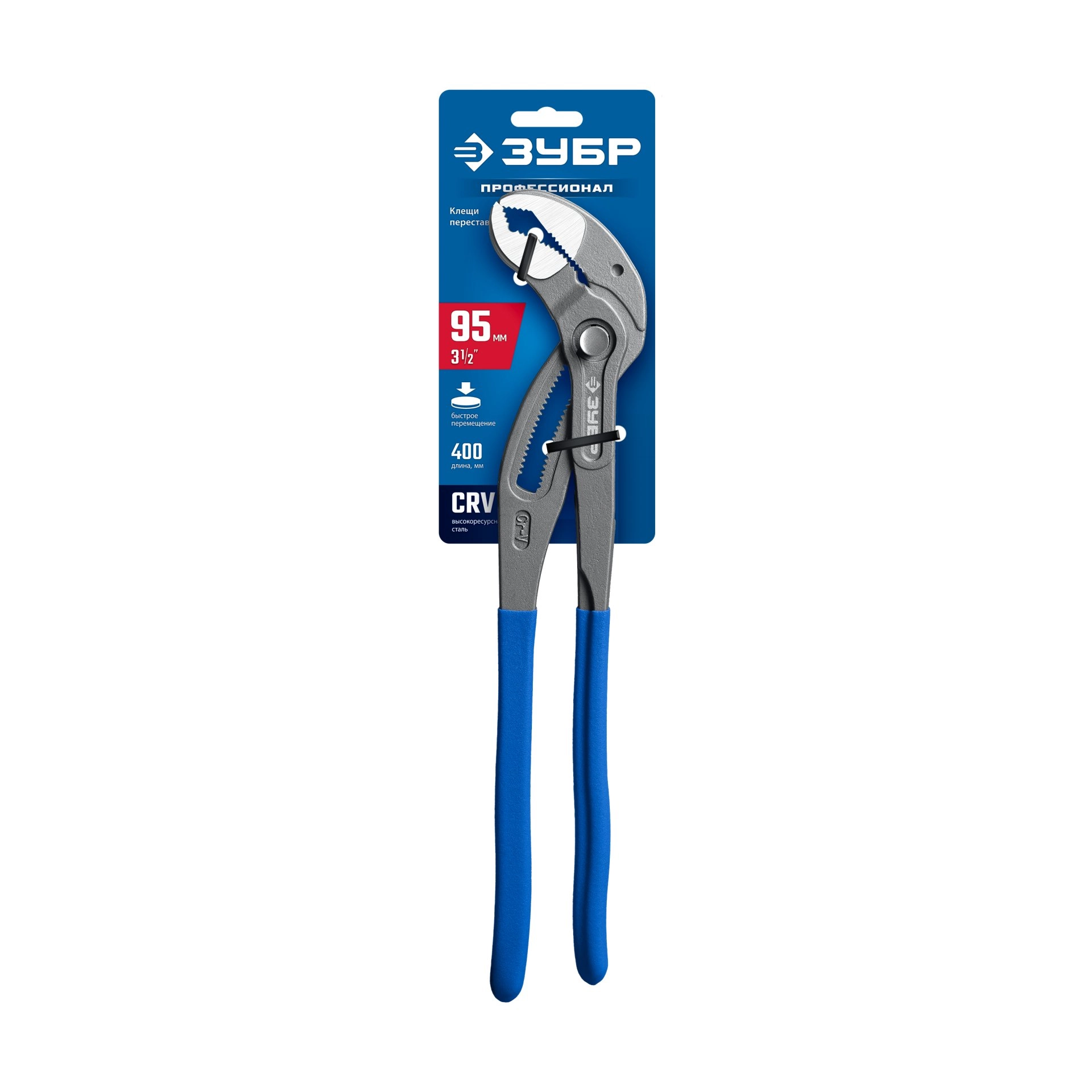 ПроизводителиКлещи 400мм, переставные, захват 95мм, с быстрым перемещением (кнопка) Cr-V "Профи" (22441-40) ЗУБР