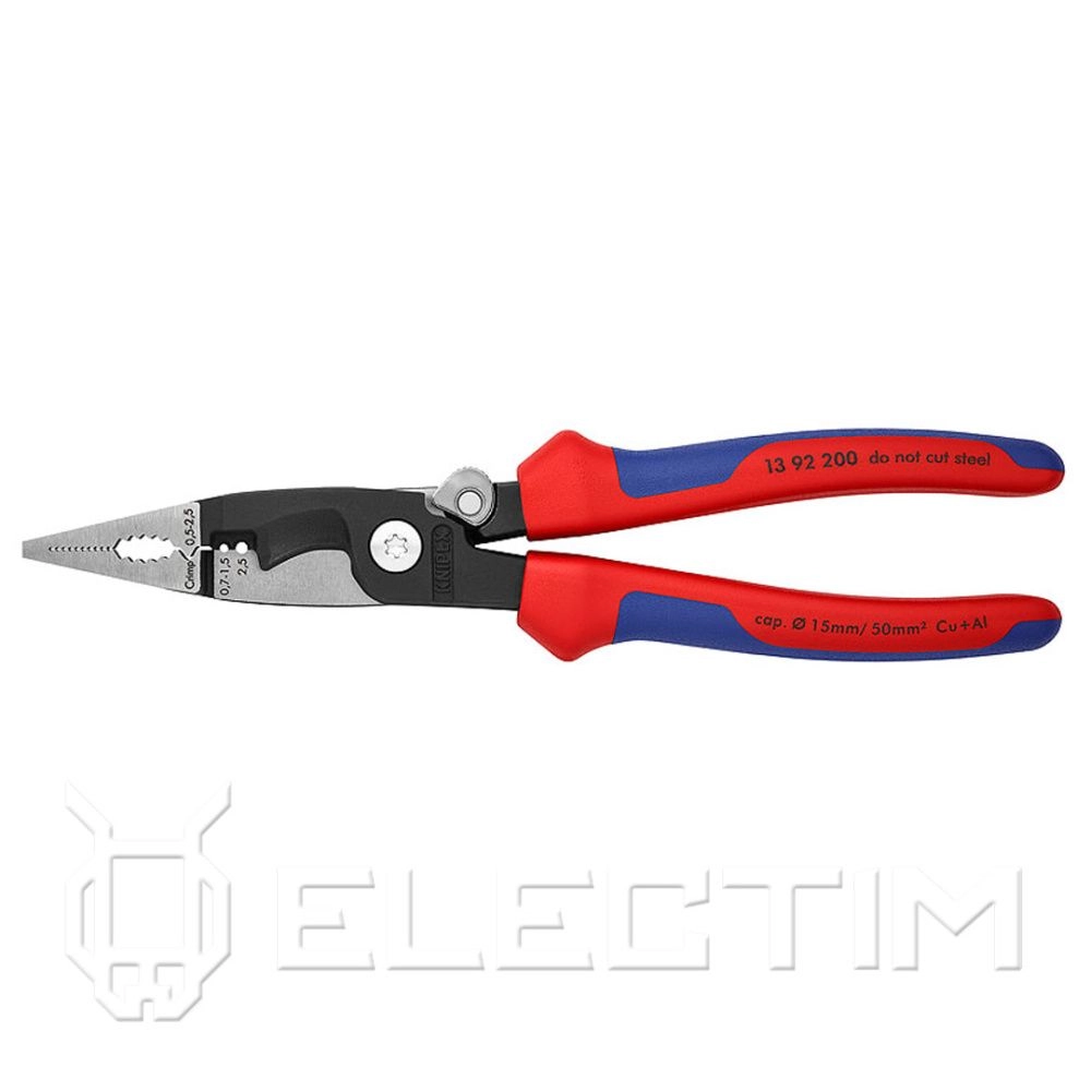 ПроизводителиКлещи электромонтажные, 6-в-1, защёлка-"собачка", хром., 200мм, обливные рукоятки (1392200) KNIPEX