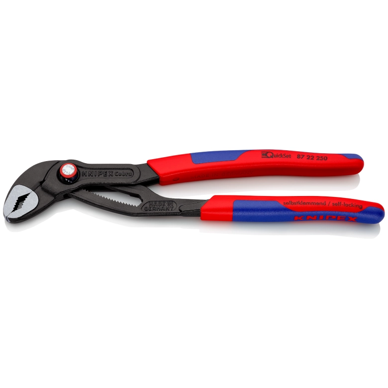Универсальные переставные клещи с кнопкой KNIPEX COBRA QuickSet KN-8722250 используются при проведении различных сантехнических работ.