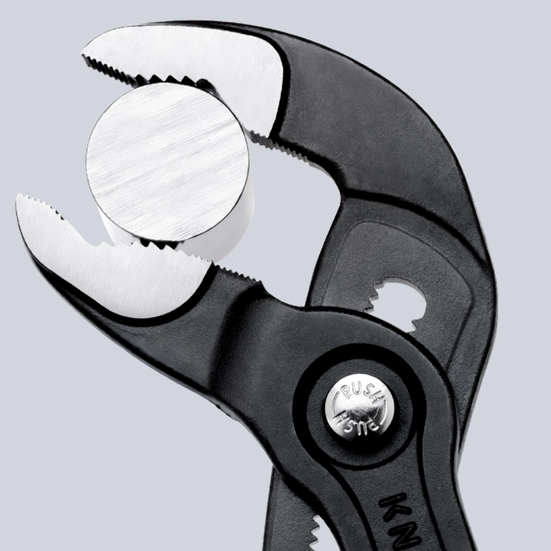 Универсальные переставные клещи с кнопкой KNIPEX КОБРА KN-8701250 используются при проведении различных сантехнических работ.
