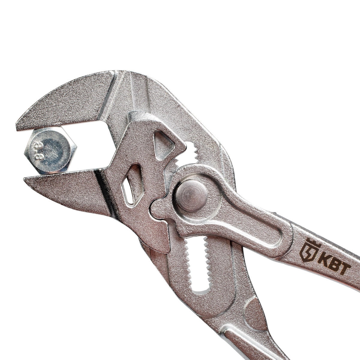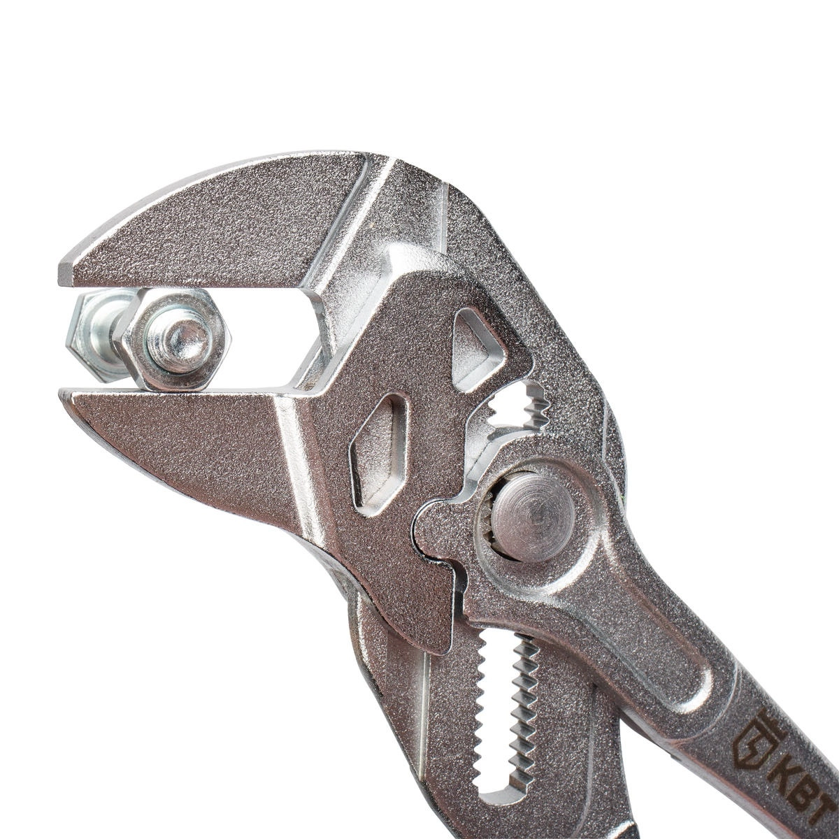 Клещи переставные - гаечный ключ 260 мм с кнопочной самофиксацией, КВТ 81770 — заменяют полный набор ключей, применяются для захвата деталей размером до 50 мм и их фиксации. Пружинная кнопка для регулировки раскрытия инструмента. Гладкие губки позволяют работать с хромированными деталями без риска их повреждения. Многокомпонентные эргономичные рукоятки для комфортной работы