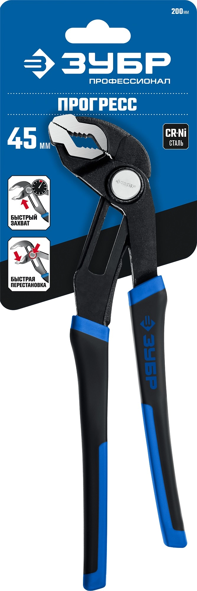 ПроизводителиКлещи переставные с быстрой регулировкой, Cr-Ni сталь, 8"/200мм, (22435-20) ЗУБР