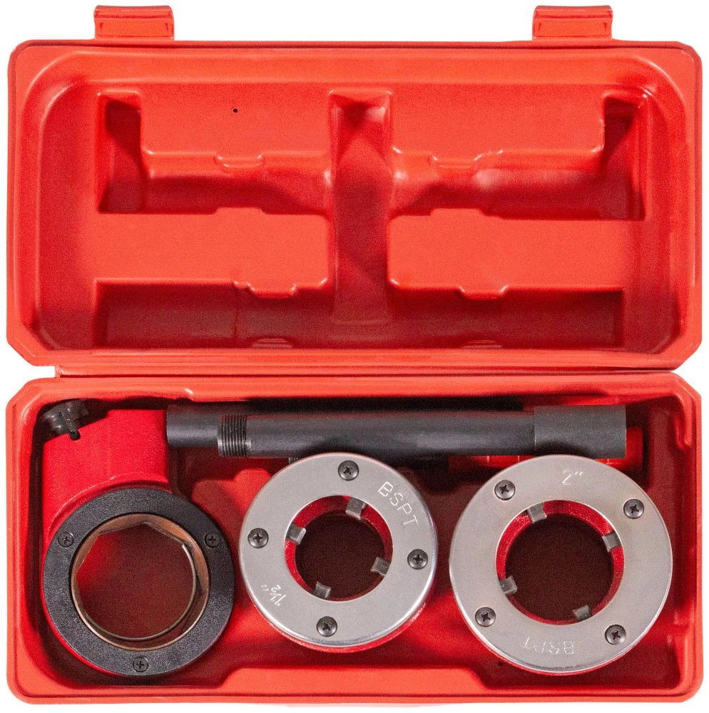 Набор для нарезания наружной резьбы на металлических трубах стандартного диаметра. Материал: высокопрочная инструментальная сталь. Упаковка: пластиковый чемодан.
