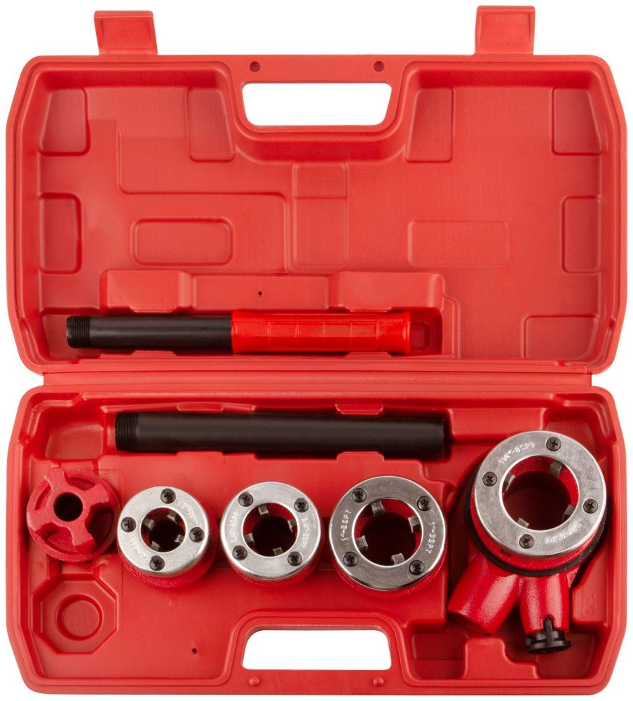 Набор для нарезания наружной резьбы на металлических трубах стандартного диаметра. Материал: высокопрочная инструментальная сталь. Упаковка: пластиковый чемодан.Производитель: