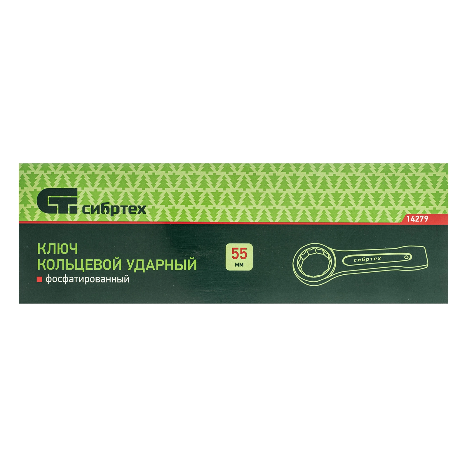 ПроизводителиКлюч гаечный кольцевой ударный односторонний 55 мм (14279) СИБРТЕХ