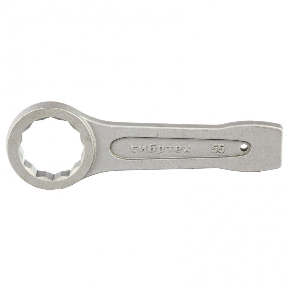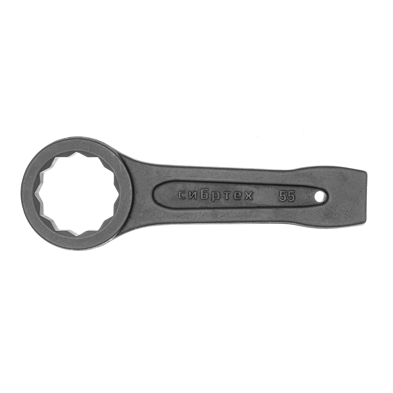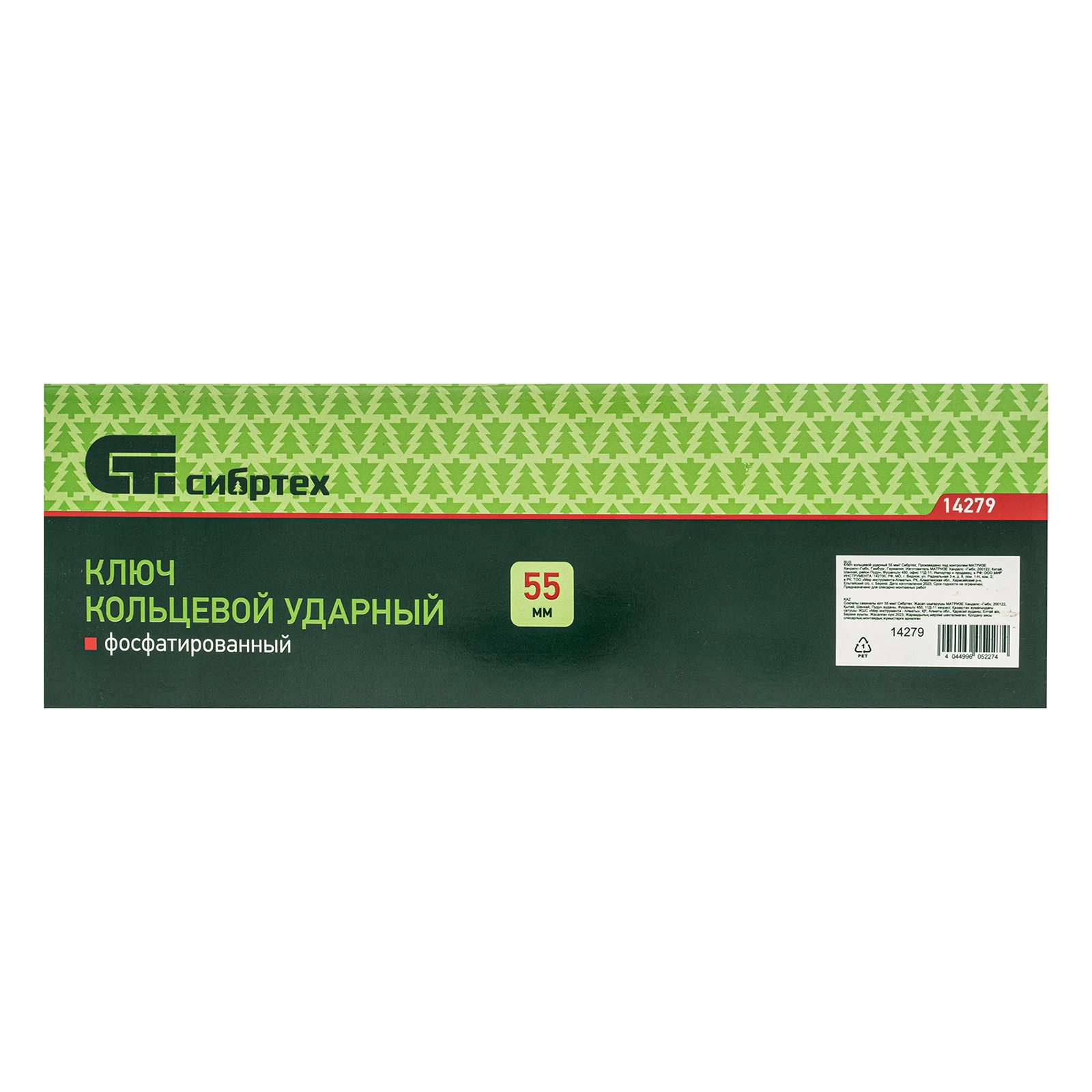 Кольцевой ударный ключ Сибртех 14279, 55 мм, позволяет откручивать и закручивать резьбовые соединения соответствующего размера.