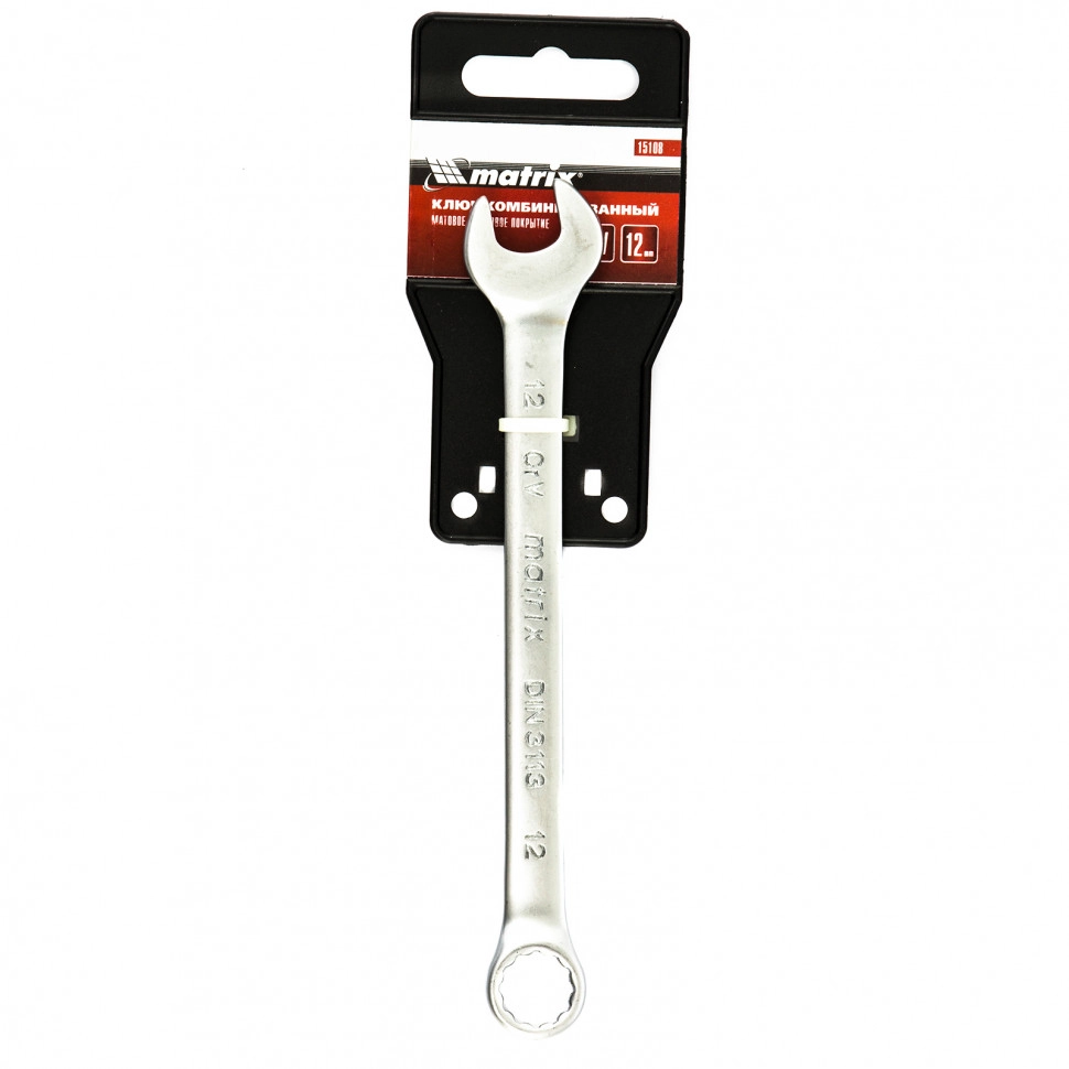ПроизводителиКлюч комбинированный, 12 мм, CrV, матовый хром (15108) MATRIX