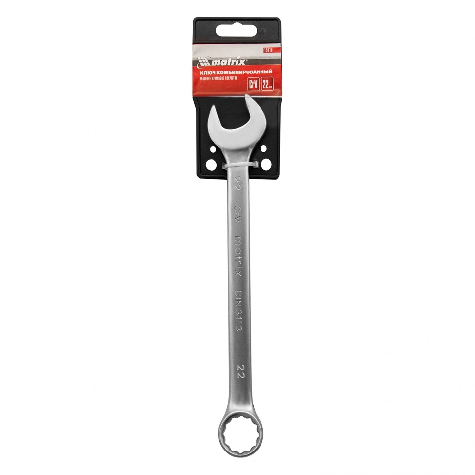 ПроизводителиКлюч комбинированный, 22 мм, CrV, матовый хром (15118) MATRIX