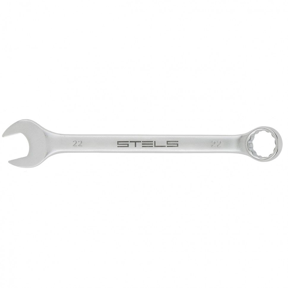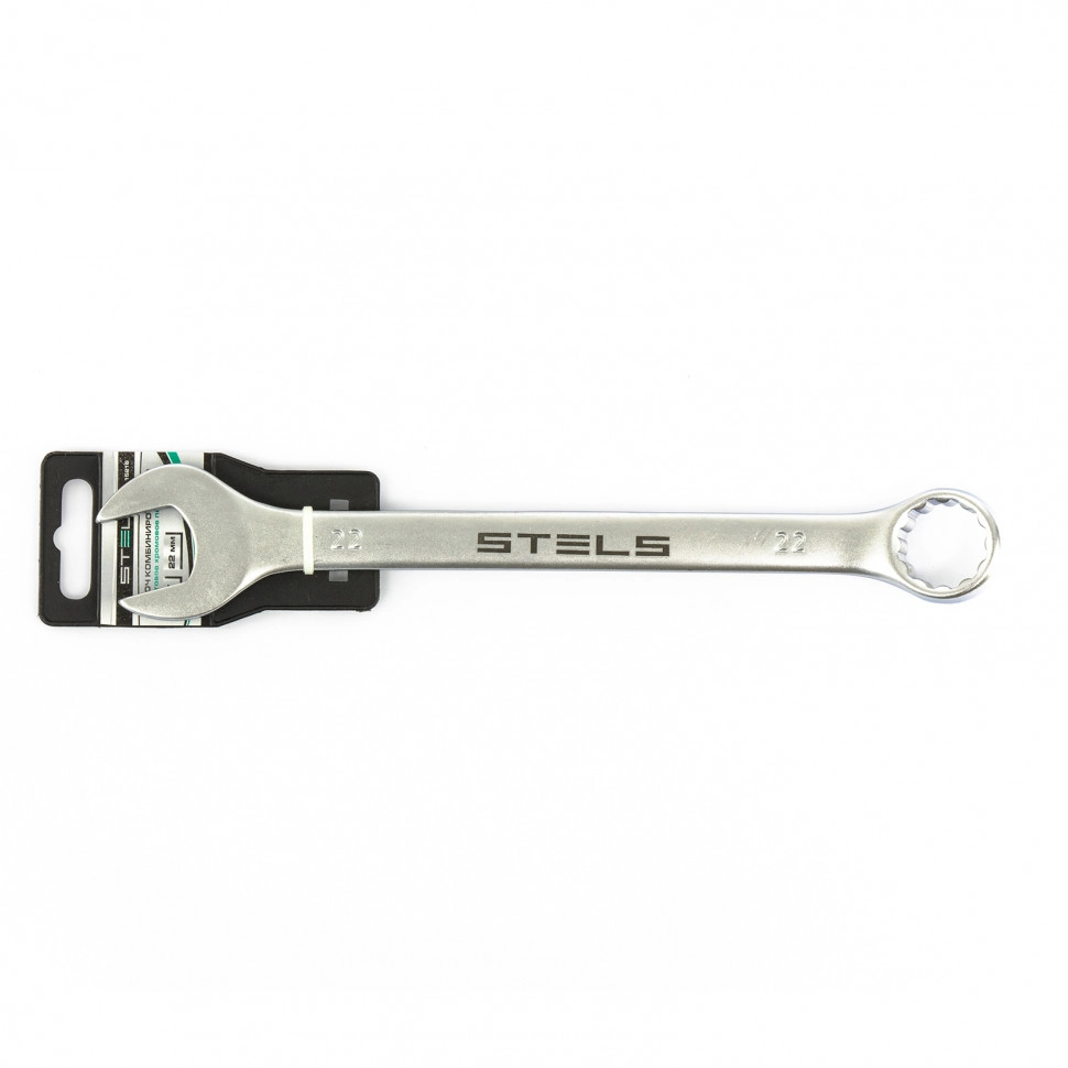 Комбинированный ключ Stels 15216 из стали CrV, 22 мм, покрытый матовым хромом, используется для закручивания и откручивания гаечных и болтовых соединений.