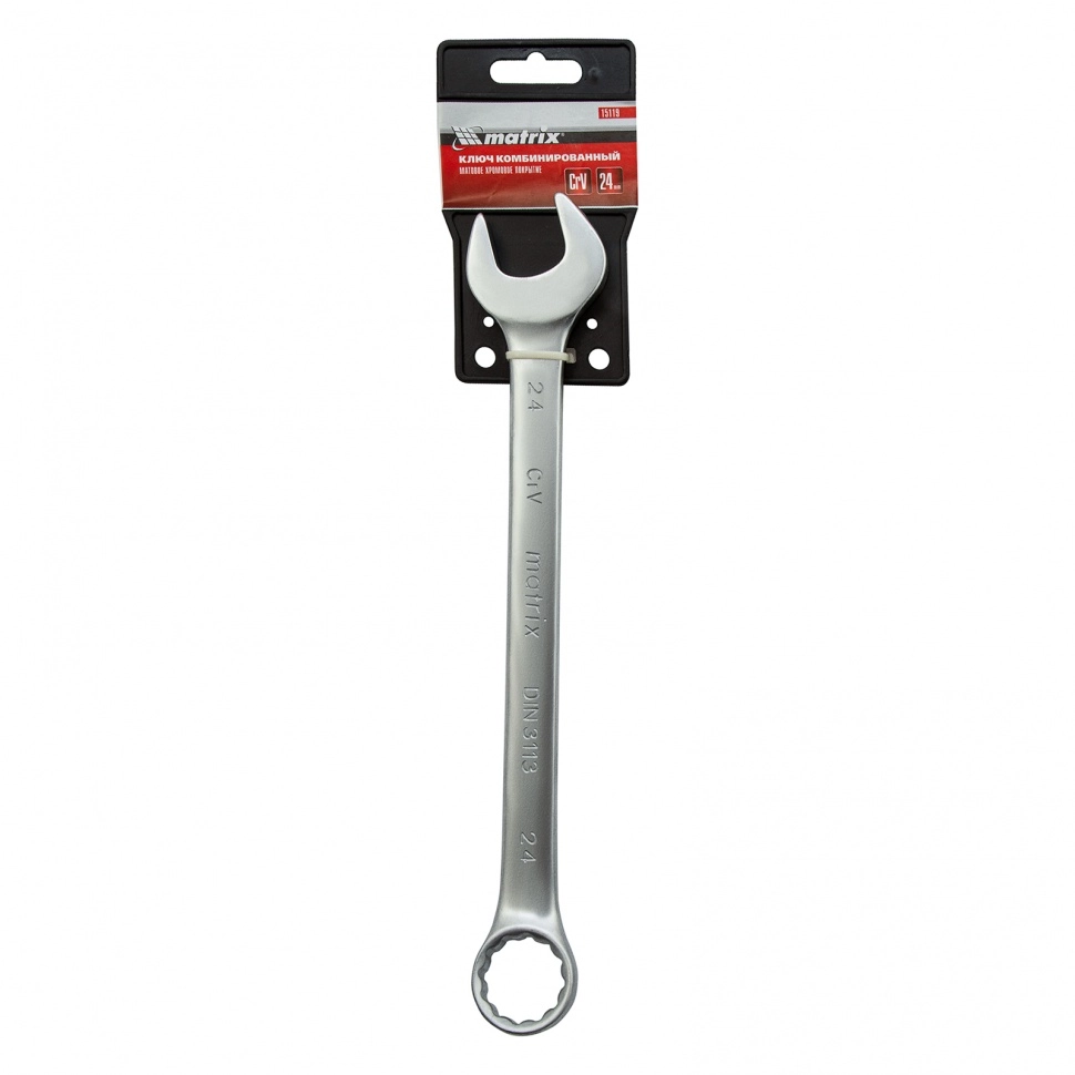 Ключ комбинированный Matrix 15119 из стали CrV, 24 мм, с покрытием «матовый хром», пригодится при проведении ремонтных работ дома или в гараже.