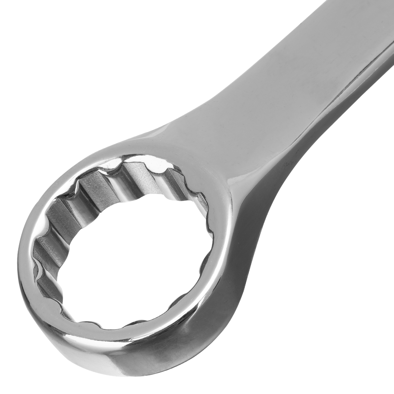 Ключ комбинированный из стали CrV, с покрытием «полированный хром», пригодится при проведении ремонтных работ дома или в гараже. С его помощью можно осуществлять быстрый монтаж и демонтаж крепежных элементов. Кольцевой зев обеспечивает удобство работы благодаря углу наклона 15 градусов относительно плоскости инструмента.