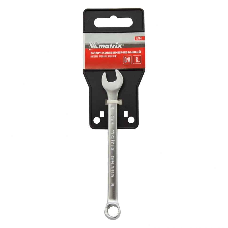 ПроизводителиКлюч комбинированный, 8 мм, CrV, матовый хром (15104) MATRIX