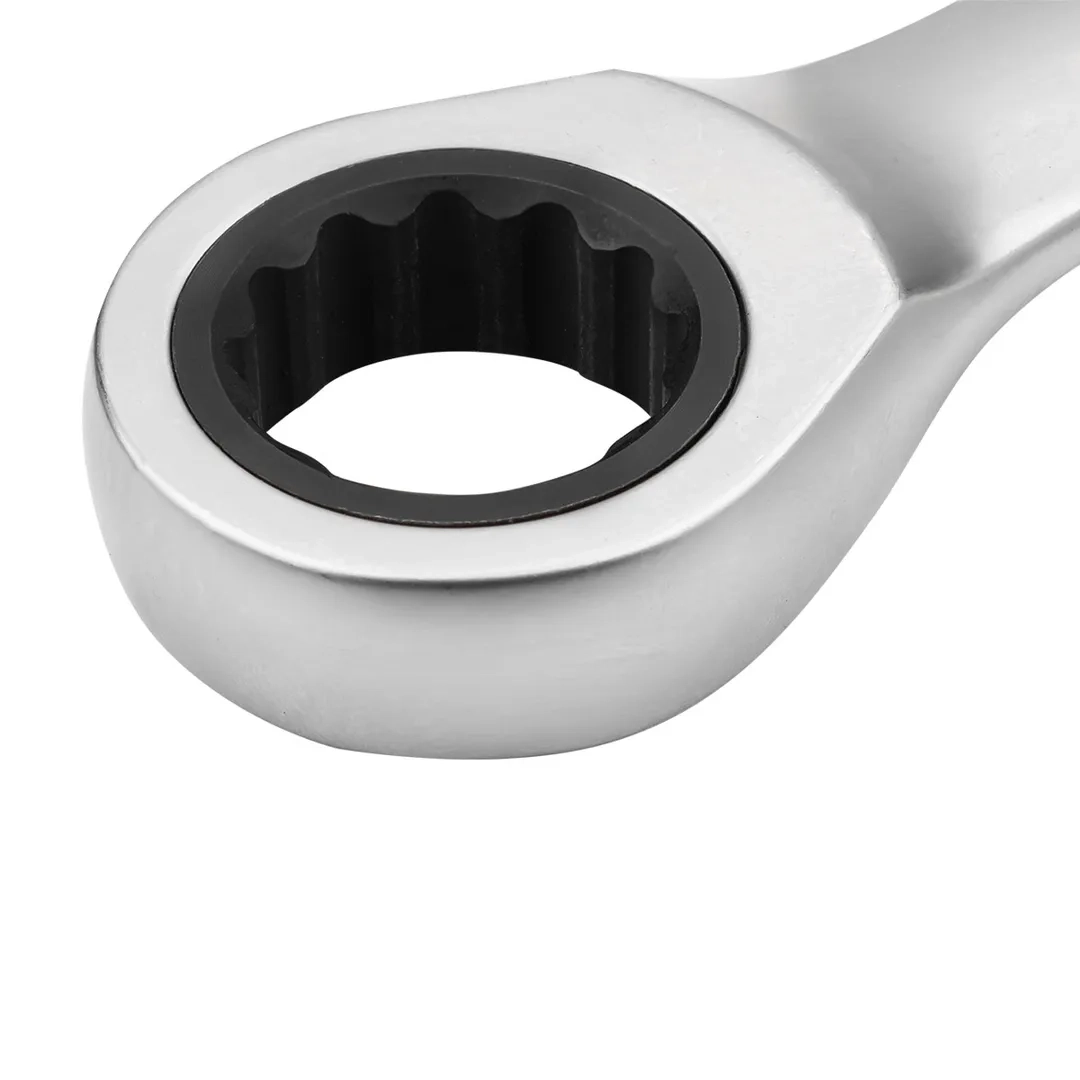 Ключ комбинированный трещоточный 15 мм - это удобный инструмент для работы с крепежными элементами, который сочетает в себе свойства рожкового и накидного ключей. Для работы в труднодоступных местах подойдет рожковый ключ. Накидной обладает большей эффективностью при отворачивании тугого крепежа. Трещоточный механизм в накидной части ключа, позволяет комфортно работать в местах с ограниченным пространством. Ключ изготовлен из высококачественной стали Cr-V.Производитель: Форсаж Лтд., Тайвань