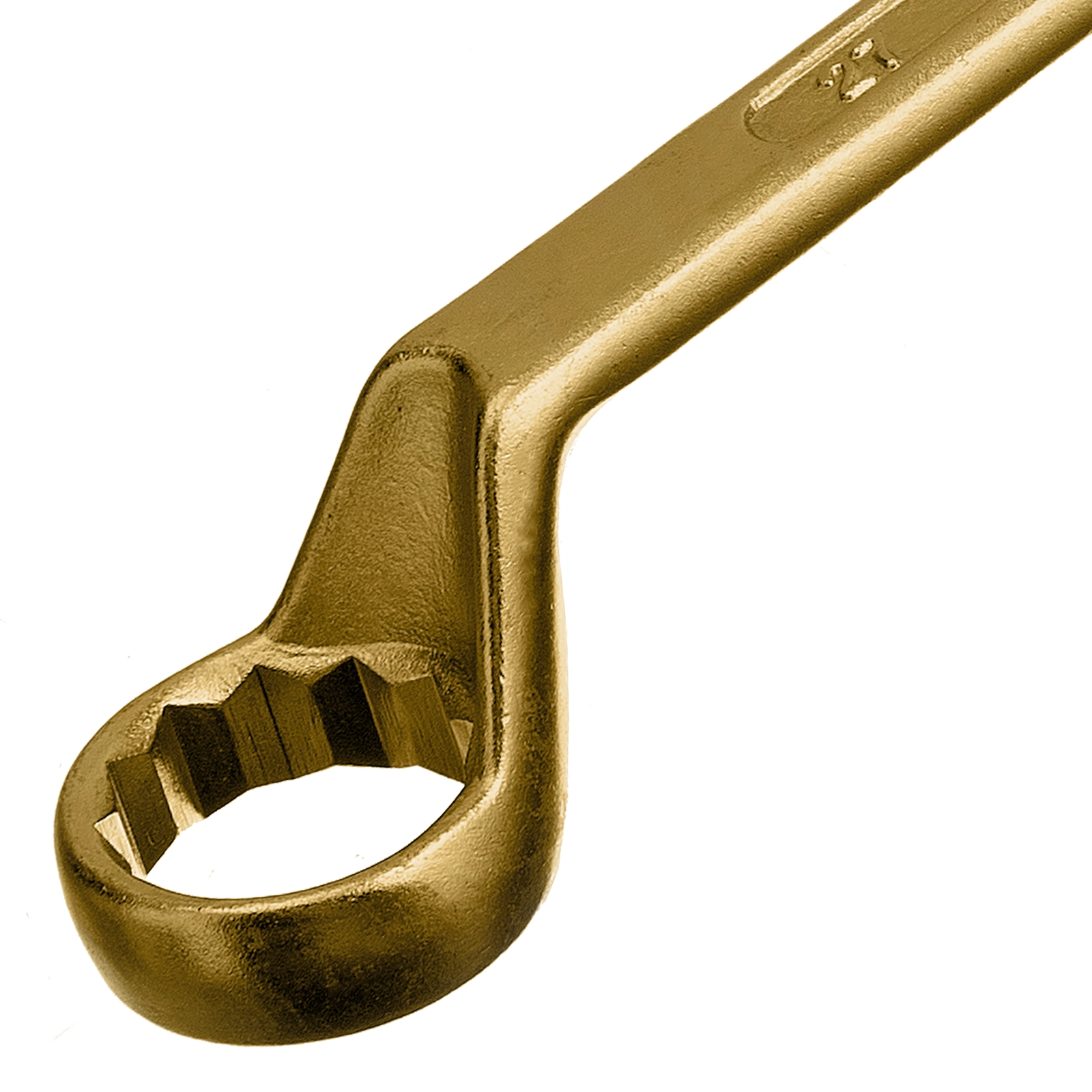 Рабочие части, смещенные относительно рукоятки, позволяют работать ключом в труднодоступных местах.