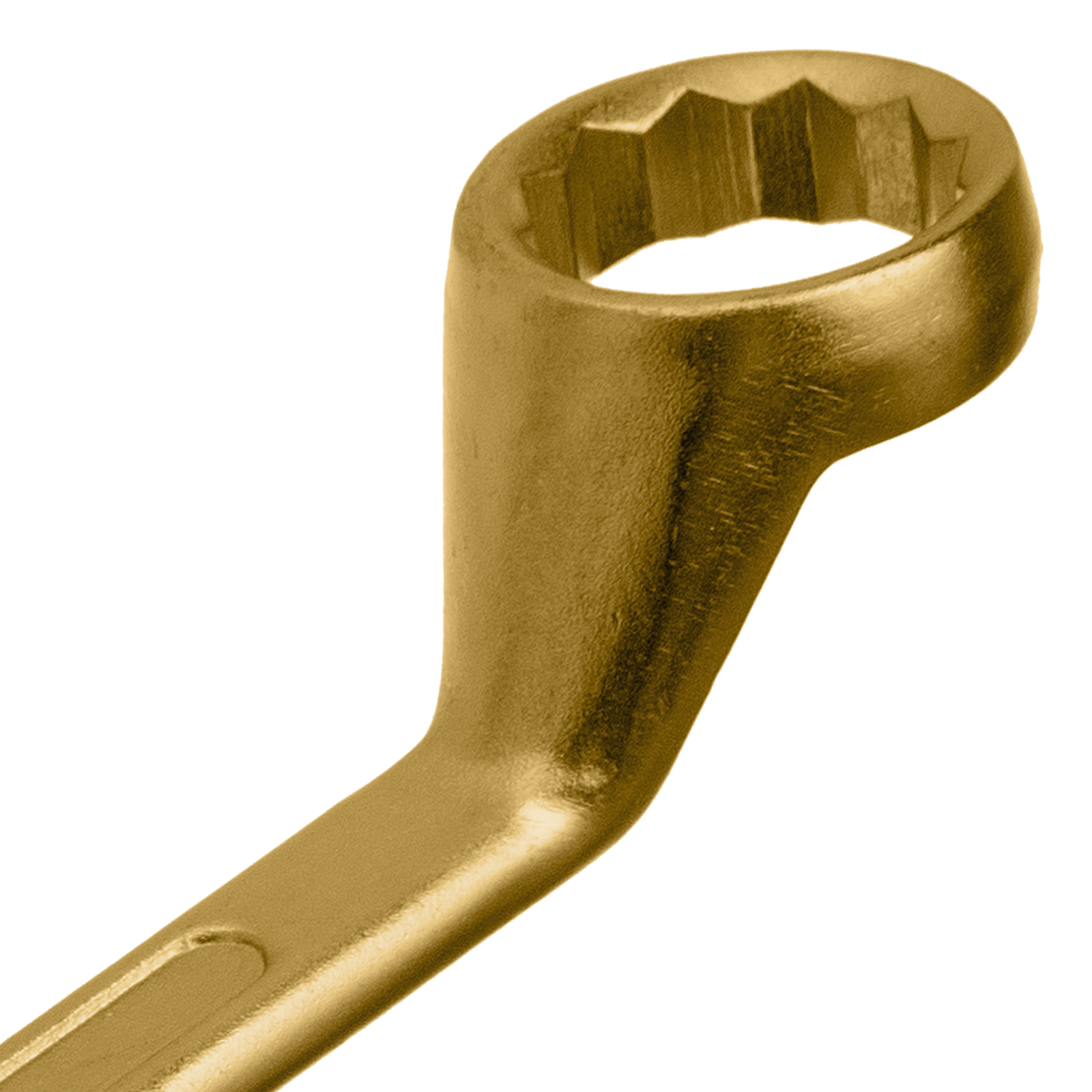 Рабочие части, смещенные относительно рукоятки, позволяют работать ключом в труднодоступных местах.