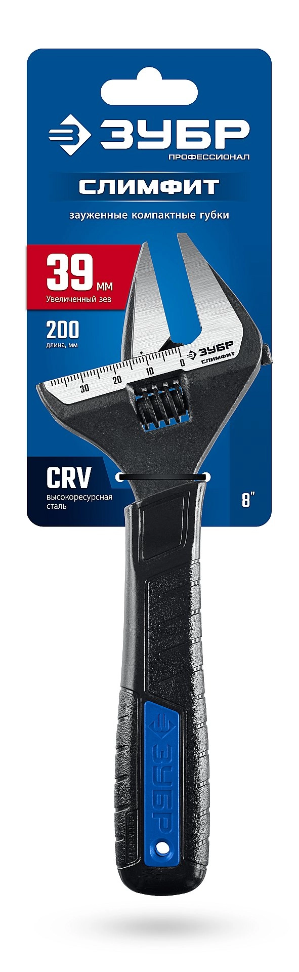ПроизводителиКлюч разводной 200мм, до 39мм, узкие губки "СлимФит" (27245-20) ЗУБР