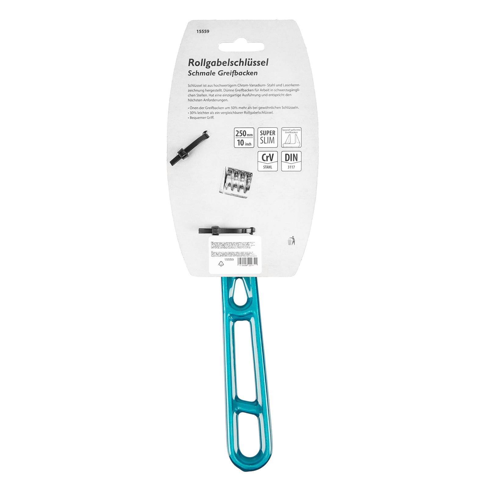 Облегченный разводной ключ Gross 15559 длиной 250 мм, из стали CrV, подходит для работы как с мелкими, так и с крупными крепежными элементами. Максимальный диапазон раскрытия зева составляет 43 мм. Конструкция инструмента усилена благодаря дополнительным ребрам жесткости на рукоятке. Ребристая рабочая поверхность губок обеспечивает надежный захват деталей и повышает точность работы.Производитель: ООО "Мир инструмента", Россия