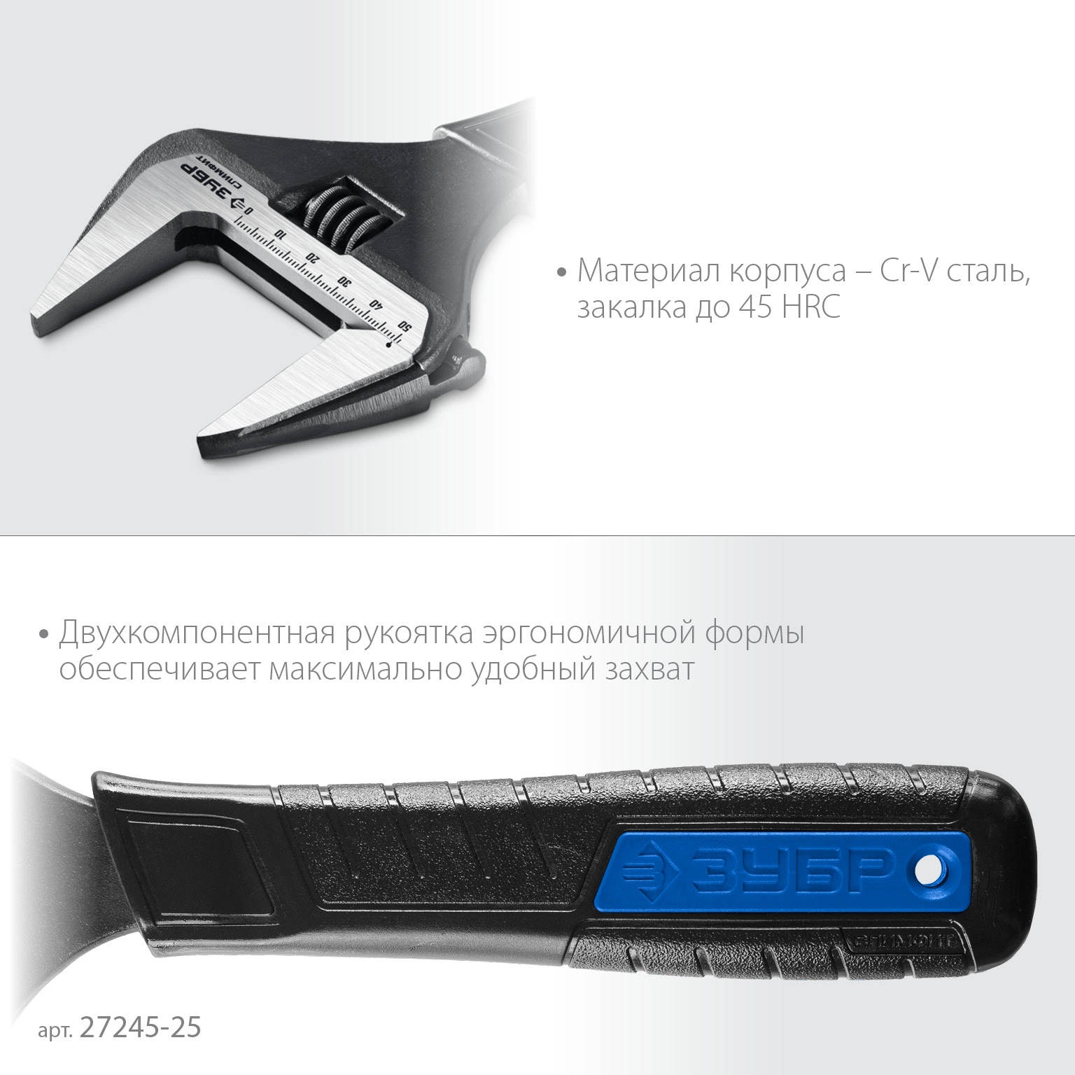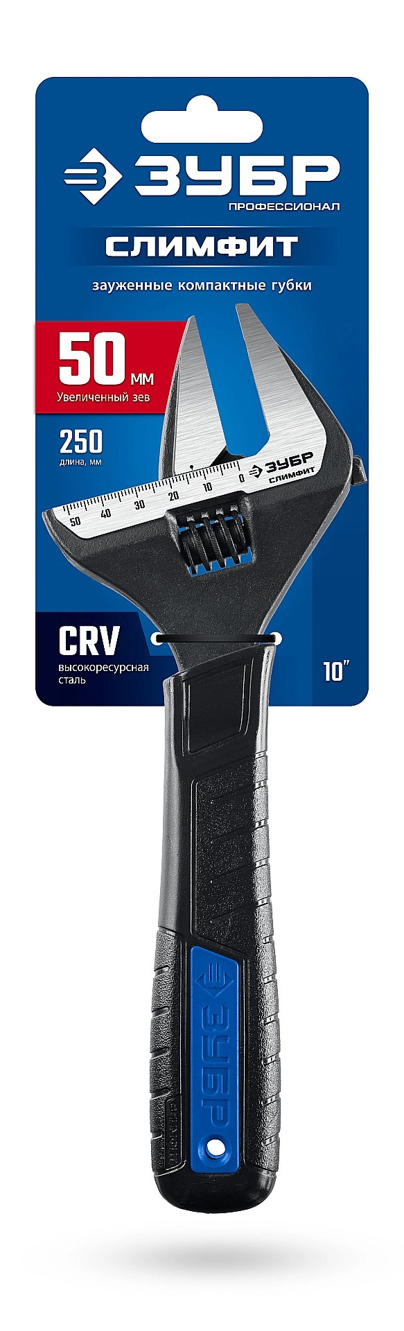 ПроизводителиКлюч разводной 250мм, до 50мм, узкие губки "СлимФит" (27245-25) ЗУБР