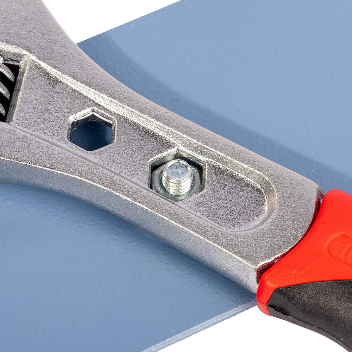 -Разводной ключ предназначен для монтажа резьбовых соединений при проведении слесарно-монтажных, авторемонтных, сантехнических работ
