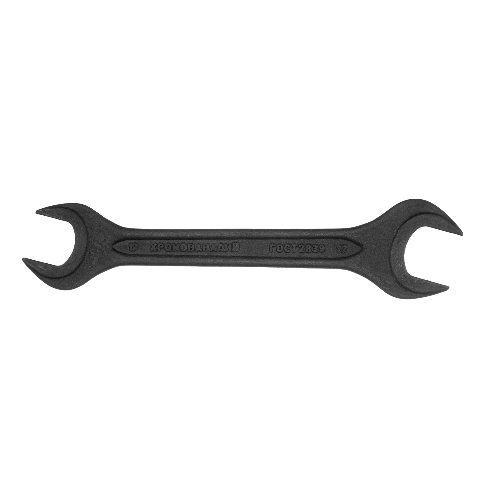 Фосфатированный рожковый ключ Сибртех 14329, 19 х 22 мм, из стали CrV, ГОСТ 2839, используется для монтажа и демонтажа шестигранных резьбовых крепежей.