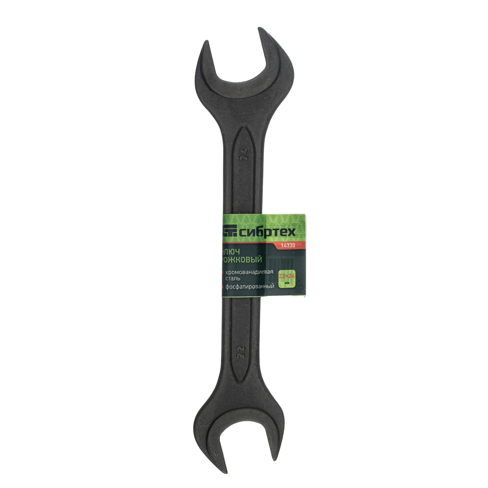 Фосфатированный рожковый ключ Сибртех 14330, 22 х 24 мм, из стали CrV, ГОСТ 2839, используется для монтажа и демонтажа шестигранных резьбовых крепежей.
