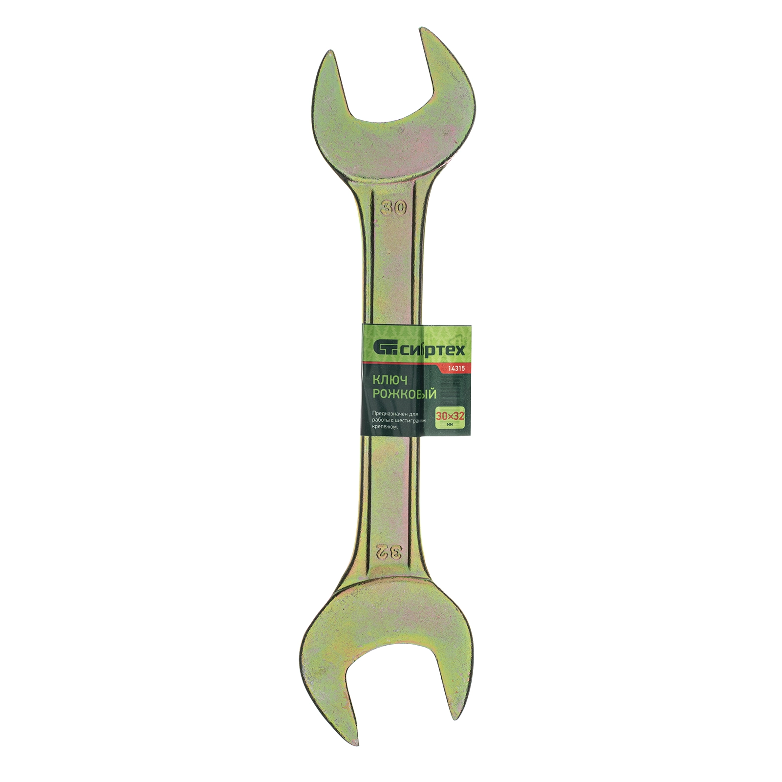 Рожковый ключ Сибртех 14315, 30 х 32 мм, с покрытием из желтого цинка, предназначен для закручивания и откручивания резьбовых крепежей с шестигранными головками.