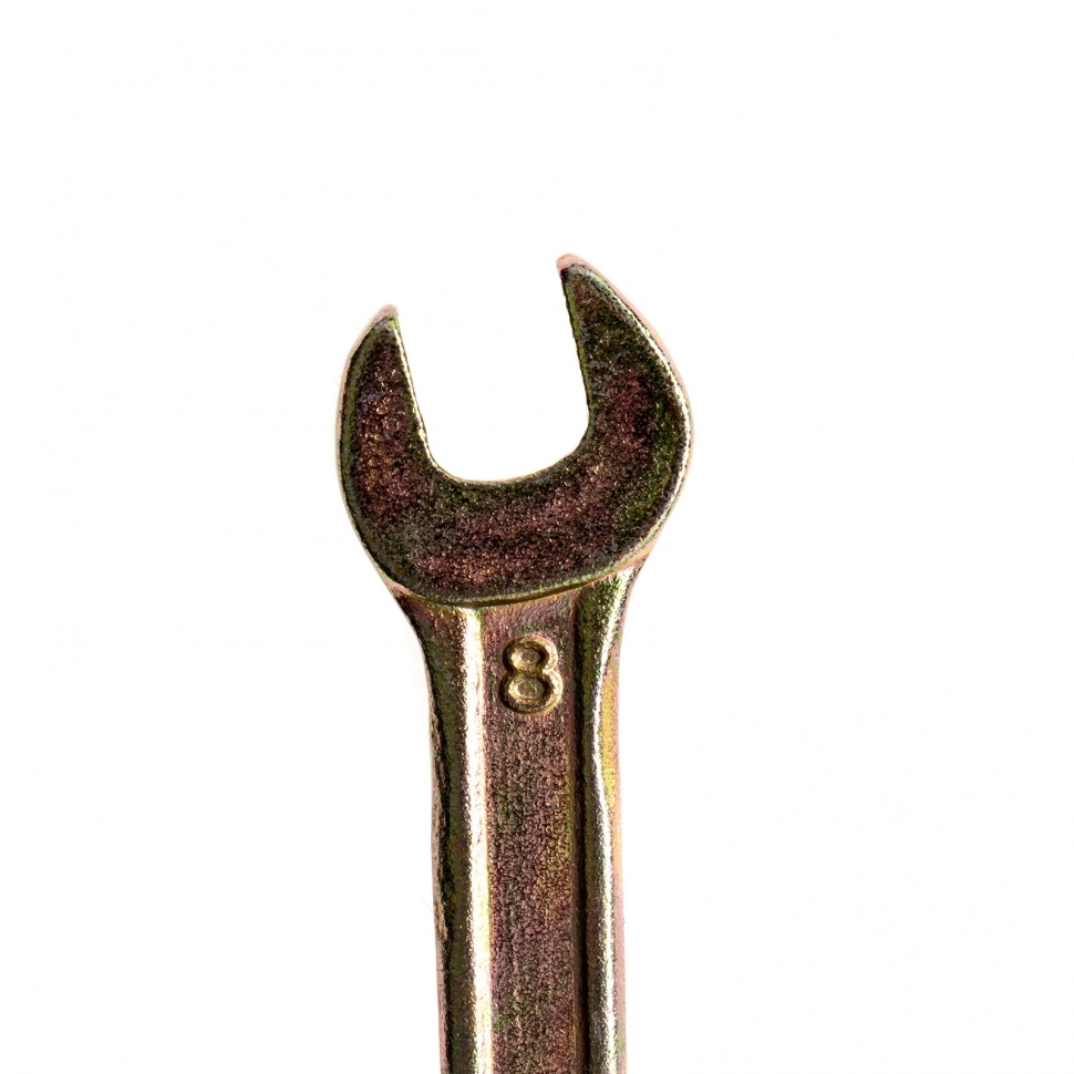 Рожковый ключ Сибртех 14303, 8 х 10 мм, с покрытием из желтого цинка, предназначен для закручивания и откручивания резьбовых крепежей с шестигранными головками.