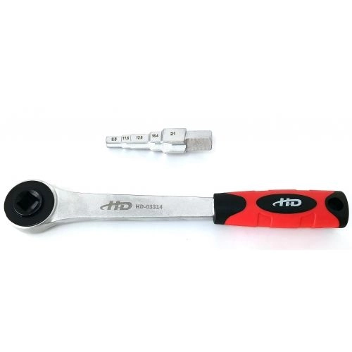 ПроизводителиКлюч трещоточный внутренний 1/2" 30T + Ключ ступенчатый 3/8", 29/68", 21/32", 27/32" (HD-03314) H-D
