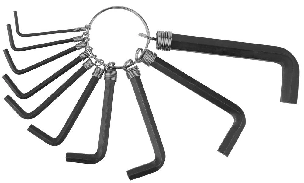 ПроизводителиНабор DEXX: Ключи имбусовые, оксидированные, на кольце, HEX, 1,5-2-2,5-3-3,5-4-5-5,5-6-8, 10шт