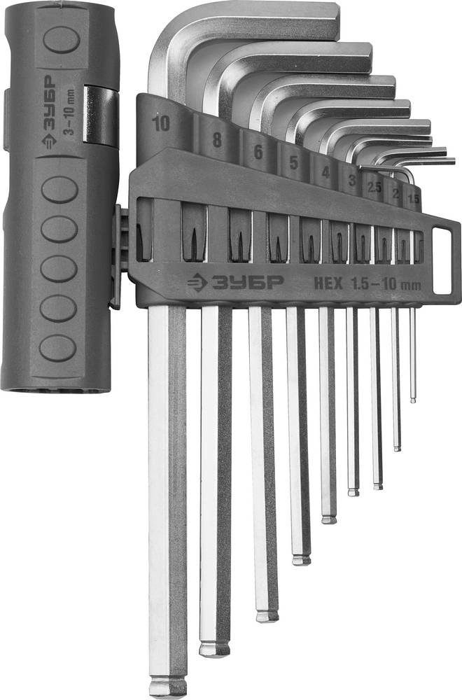 ПроизводителиНабор ЗУБР Ключи "ЭКСПЕРТ" имбусовые длинные с шариком, Cr-Mo, сатинир. покр., держатель-рукоятка, H