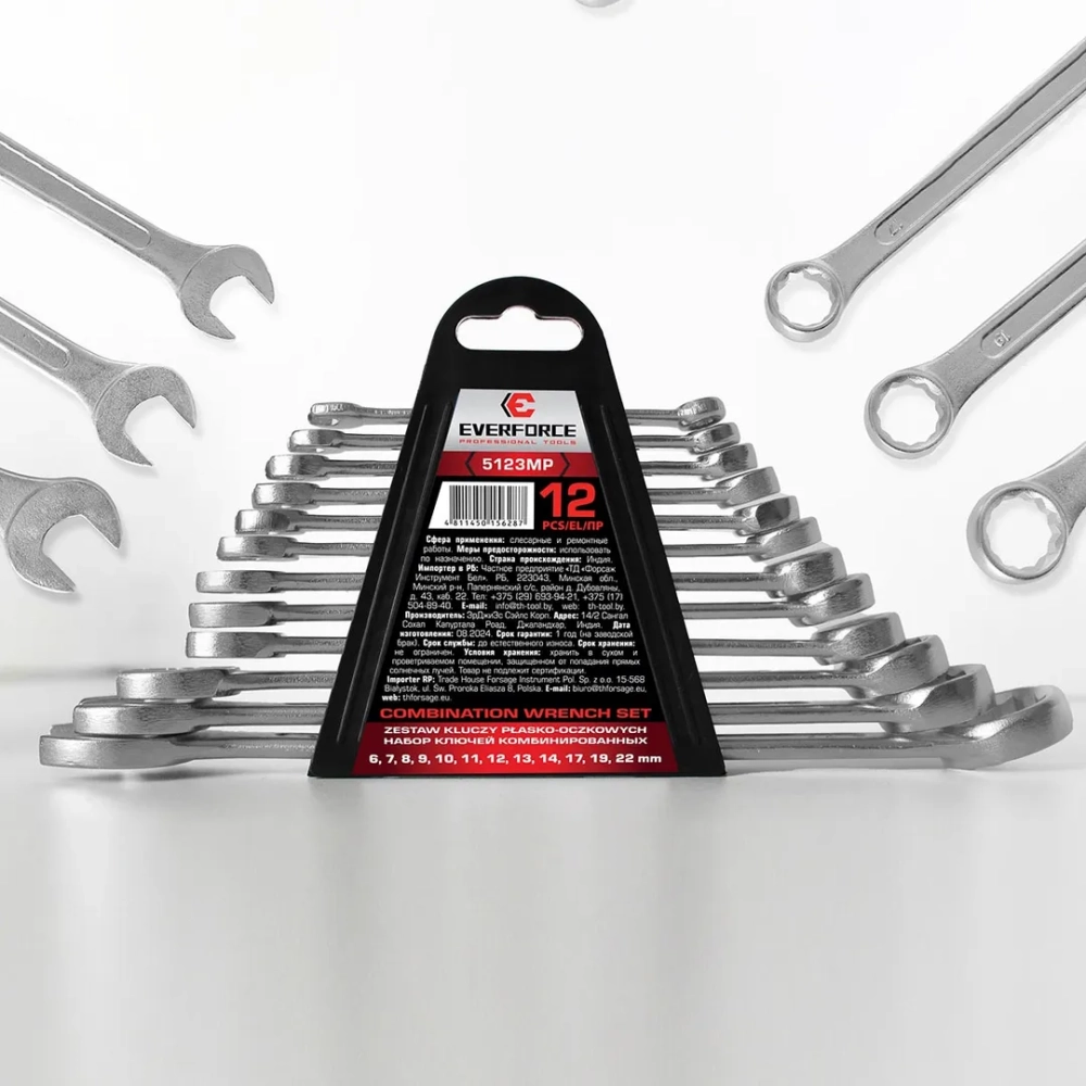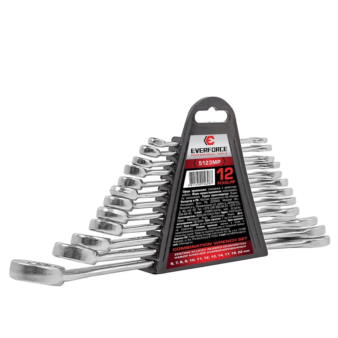 ПроизводителиКлючи комбинированные, 12пр. (6-14, 17, 19, 22мм) (EF-5123MP) EVERFORCE