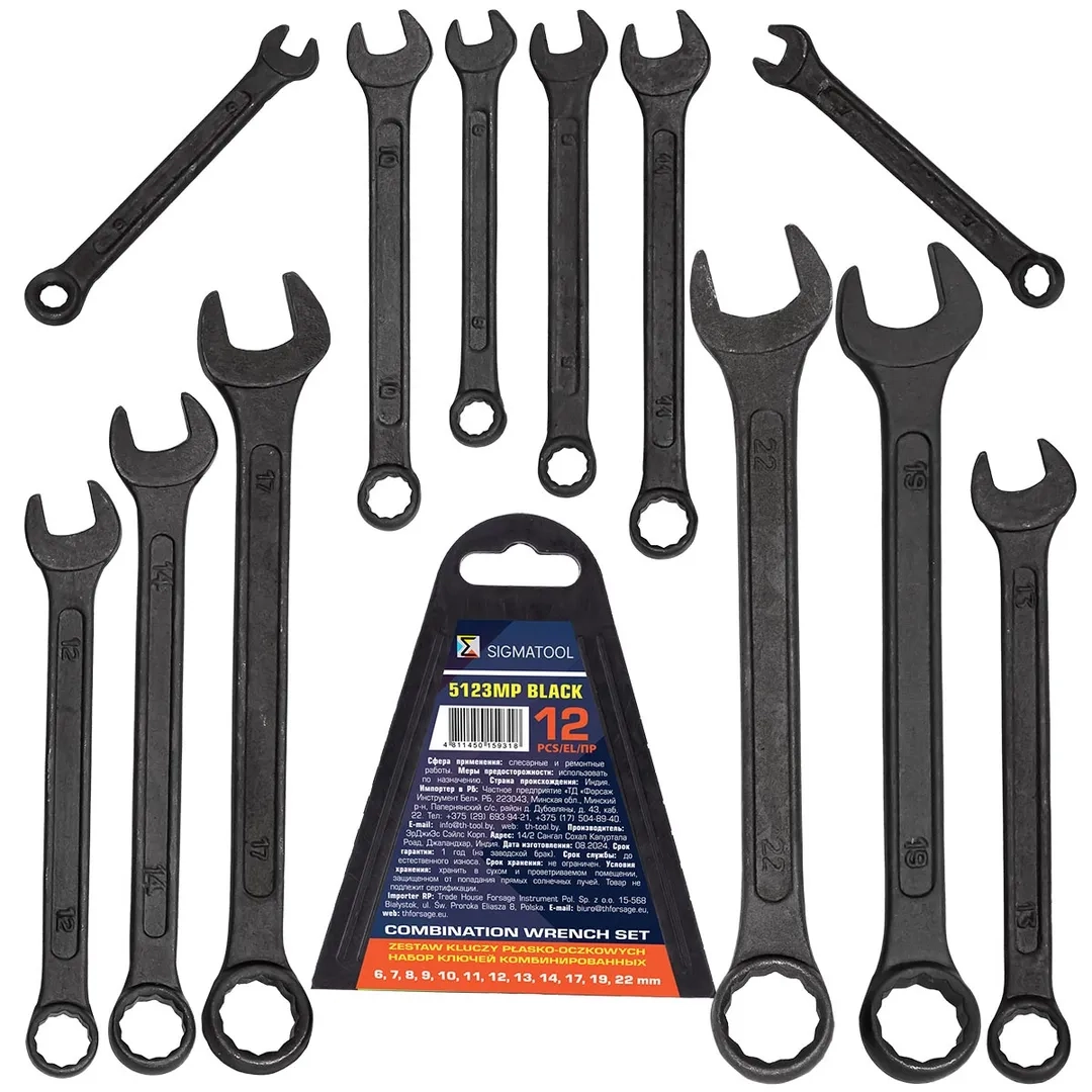 ПроизводителиКлючи комбинированные, 12пр. (6-14, 17, 19, 22мм) (Sigmatool-5123MP BLACK) SIGMATOOL