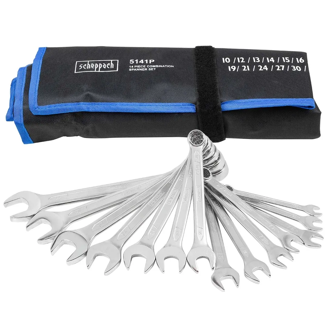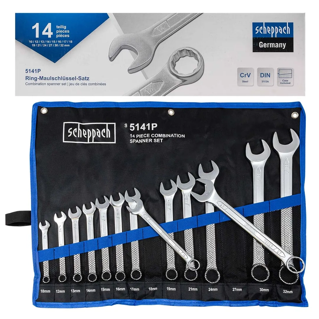 ПроизводителиКлючи комбинированные, 14пр. (10, 12-19, 21, 24, 27, 30, 32мм) на полотне (Sch-5141P) Scheppach