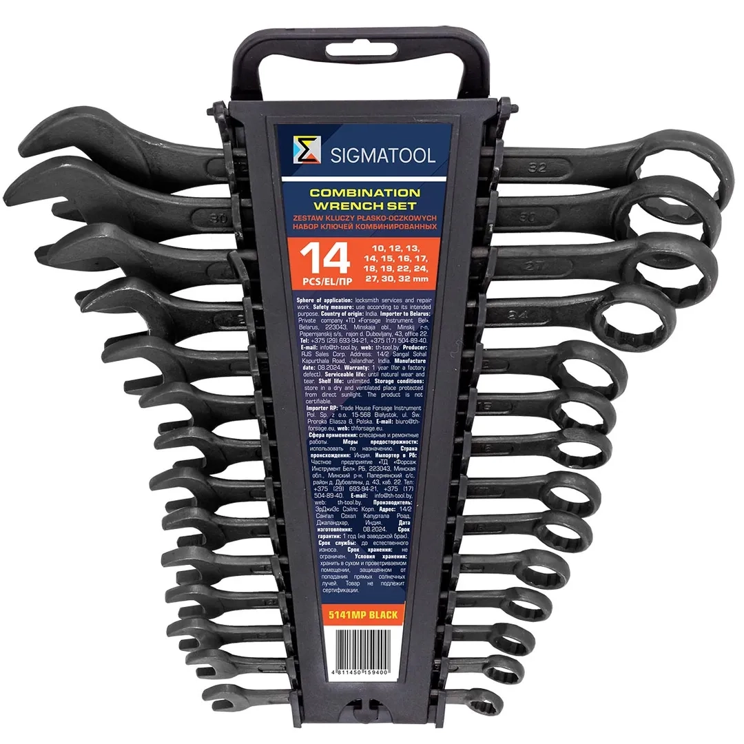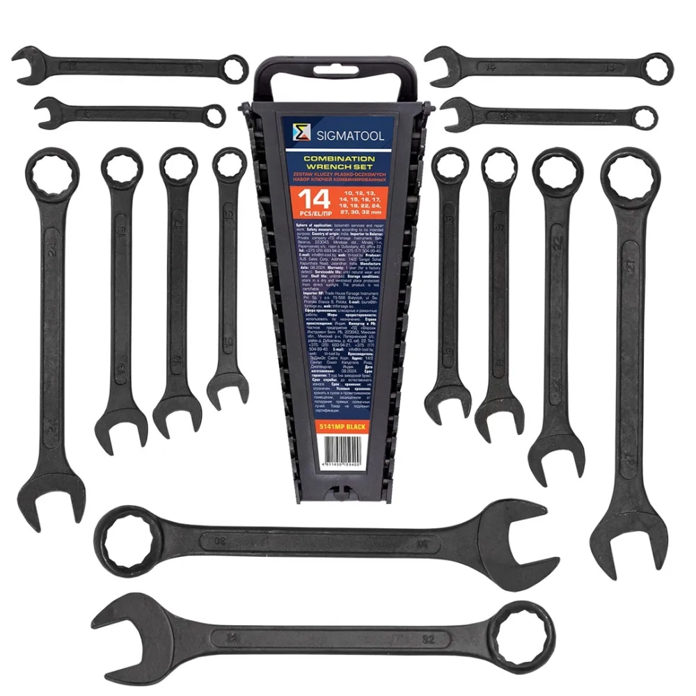 ПроизводителиКлючи комбинированные, 14пр. (10, 12-19, 22, 24, 27, 30, 32мм) (Sigmatool-5141MP BLACK) SIGMATOOL