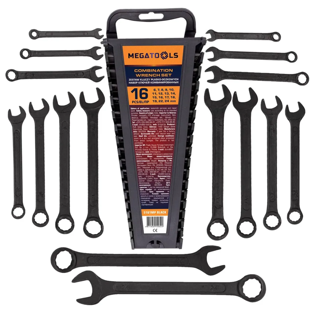ПроизводителиКлючи комбинированные, 16пр. (6-19, 22, 24мм) (MT-5161MP BLACK) MEGATOOLS