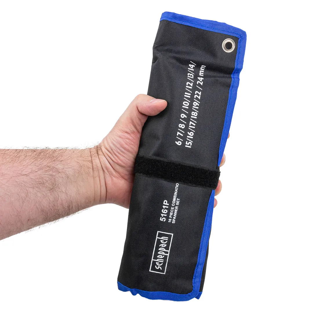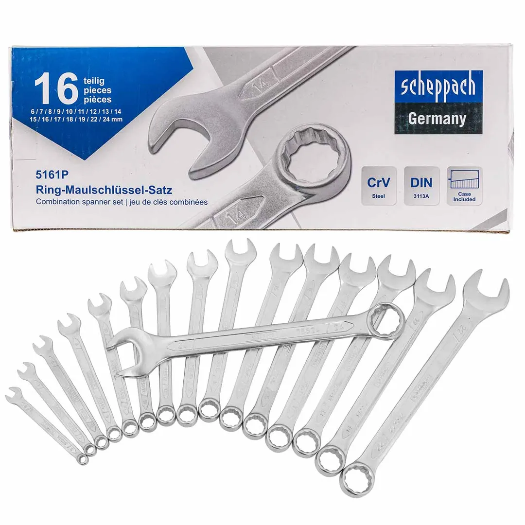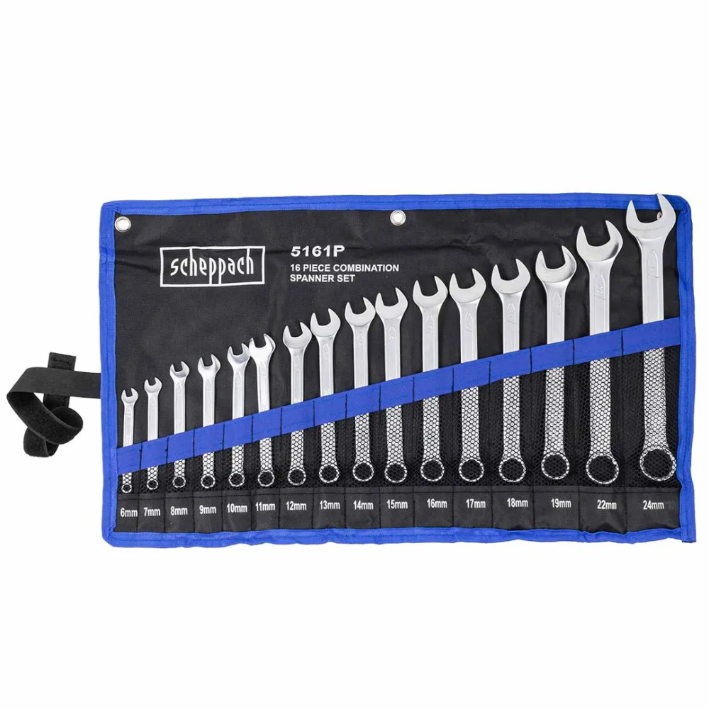 ПроизводителиКлючи комбинированные, 16пр. (6-19, 22, 24мм) на полотне (Sch-5161P) Scheppach