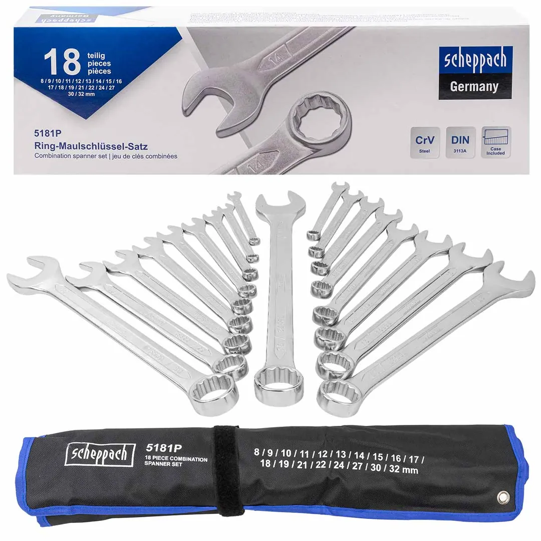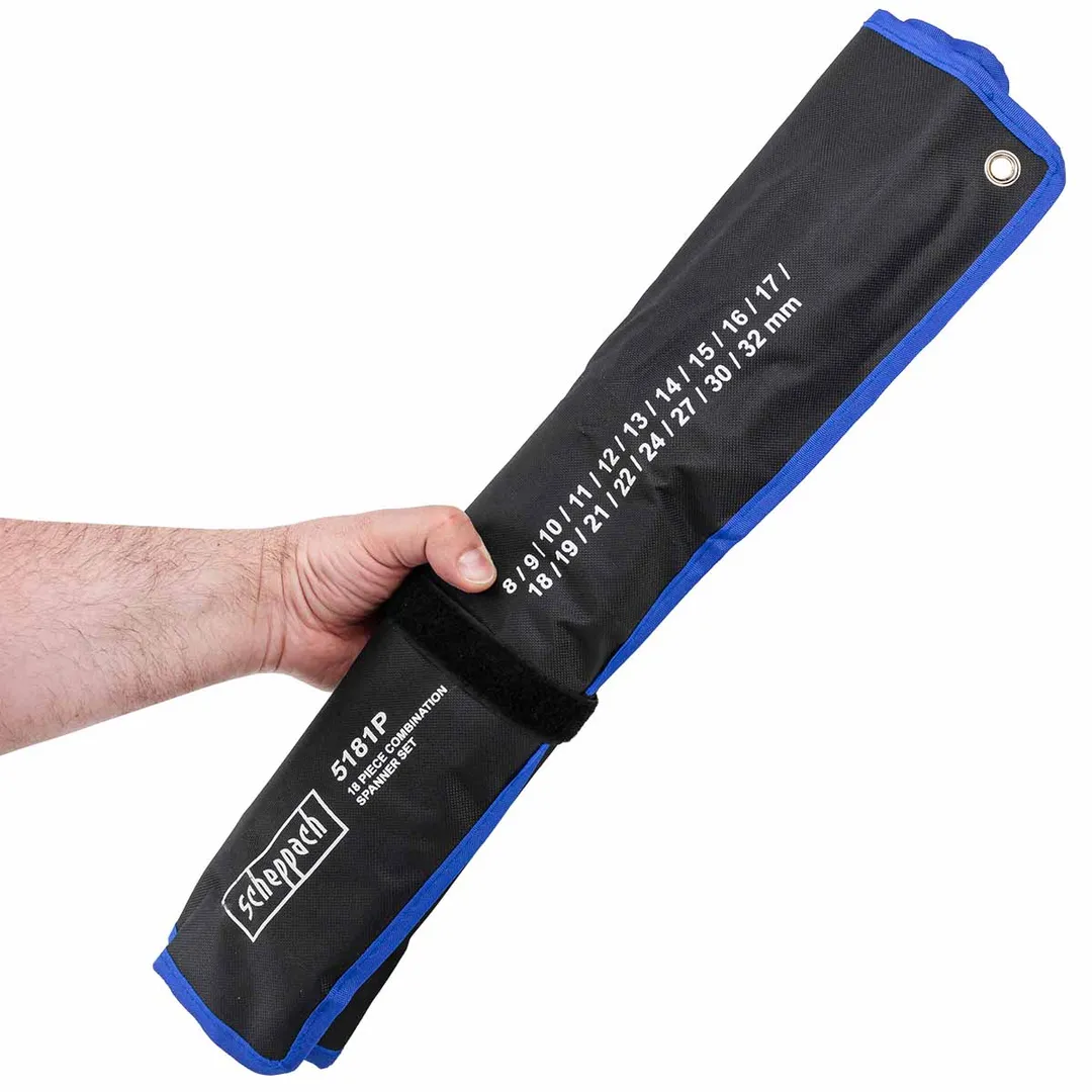 ПроизводителиКлючи комбинированные, 18пр. (8-19, 21, 22, 24, 27, 30, 32мм) на полотне (Sch-5181P) Scheppach