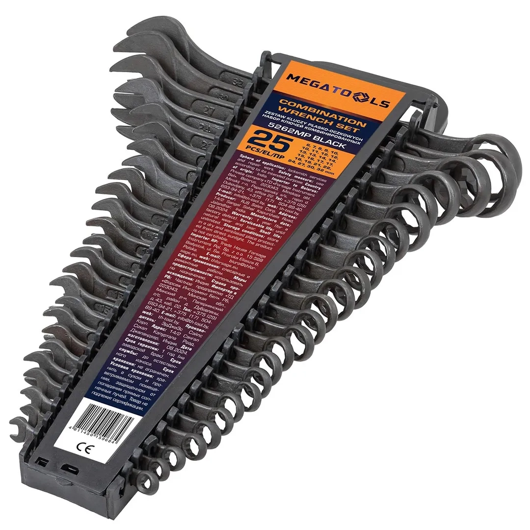 ПроизводителиКлючи комбинированные, 25пр. (6-19, 21, 22, 24, 27, 30, 32мм) (MT-5262MP BLACK) MEGATOOLS