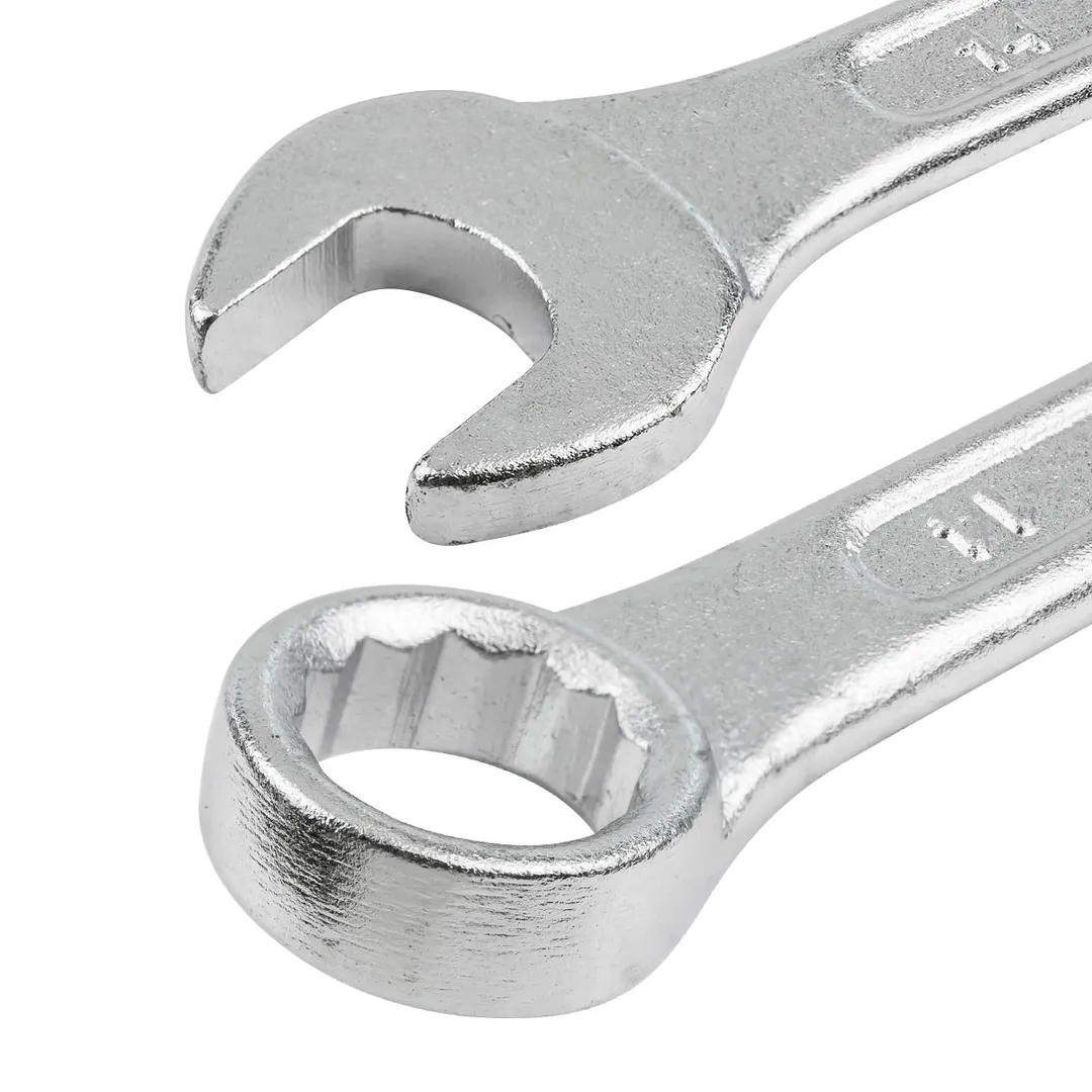 Ключи комбинированные – универсальные гаечные ключи, совмещающие в себе функционал и преимущества рожковых и накидных ключей. Зевы комбинированных ключей имеют одинаковые размеры. Ключи гаечные с открытым и кольцевым зевами предназначены для монтажа либо демонтажа резьбовых соединений. Набор изготовлен из высококачественной стали Cr-V.
